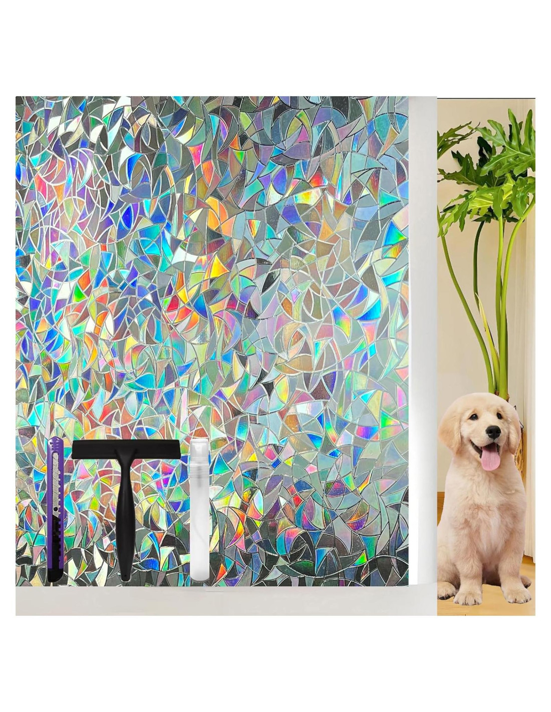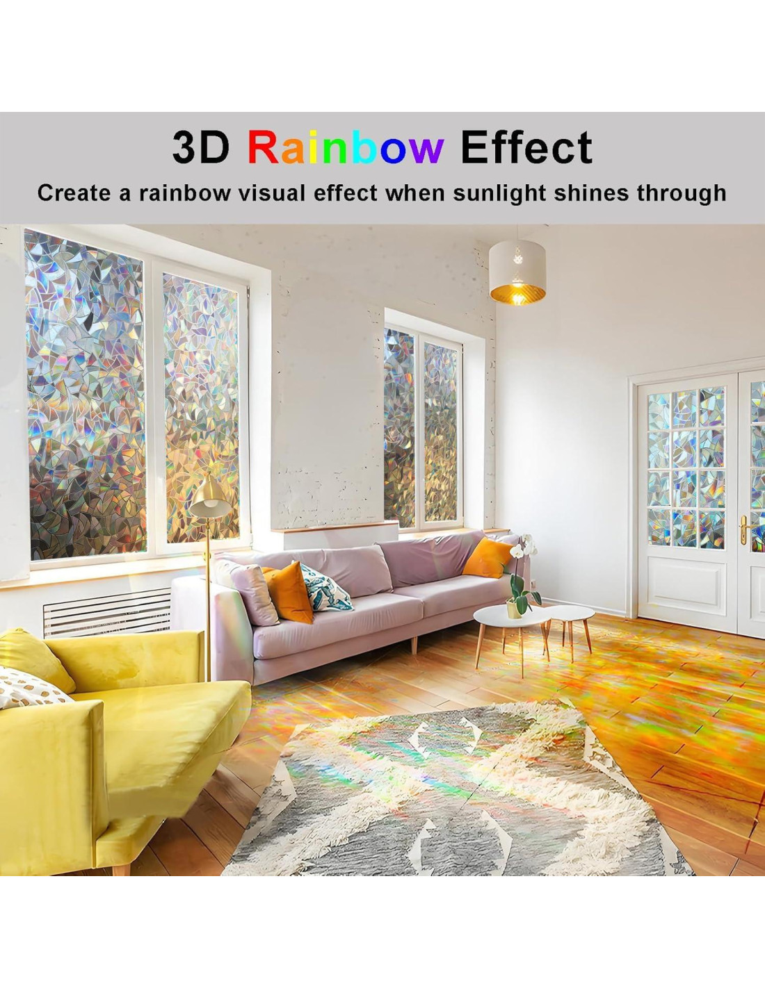 - Efecto Arcoíris y Decoración del Hogar: Esta película para ventanas presentará un efecto colorido cuando haya luz, como un arcoíris, brindándote una experiencia visual única. En condiciones de no iluminación, habrá diferentes cambios de color, permitiéndote experimentar diferentes sensaciones en cada momento. En ausencia de luz, esta película para ventanas no tendrá ningún color.