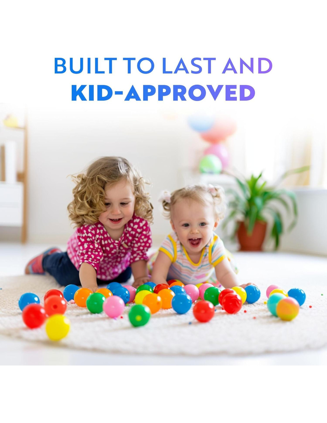 - APROBADO POR BEBÉS - Paquete de Valor de 50 bolas de juego pequeñas y coloridas que son perfectas para la piscina de bolas de sus hijos, tienda de juego, túnel de arrastre, casa de juegos, parque infantil, casa de rebote, piscina o bañera. Fabricadas con plástico no PVC y libres de Ftalatos, Plomo y BPA, estas bolas de piscina de 2.1" de diámetro (5,08 cm) no tóxicas ofrecen una experiencia de juego sin preocupaciones para bebés y niños pequeños. ¡Haz que la hora de jugar sea súper segura, súper suave y súper divertida!