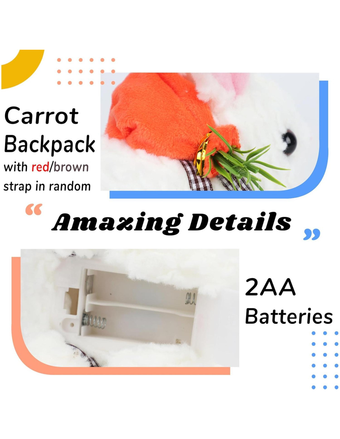 - ACERCA DEL CONEJO SALTARÍN: Este adorable conejo mide aproximadamente 7 pulgadas (17,78 cm) de largo, el tamaño portátil y el peso ligero permiten que los niños lo lleven a todas partes y jueguen con él. El conejo saltarín puede atraer fácilmente la atención de los niños, te da más espacio y tiempo para hacer tus propias cosas. Inspira a tus hijos y sorprende a amigos o invitados con un regalo interactivo ideal para cualquier ocasión. Deja que la mente de tus hijos corra libremente, conecte su imaginación y disfrute de un tiempo de juego feliz.