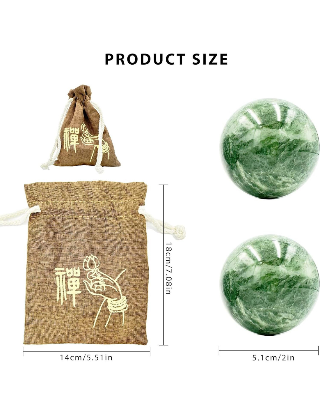 - La bola de ejercicio está hecha de piedra de jade natural, que ha sido procesada por un proceso de pulido tradicional, que es brillante, suave y duradera. Pero debido a que es jade natural, cada textura será diferente.