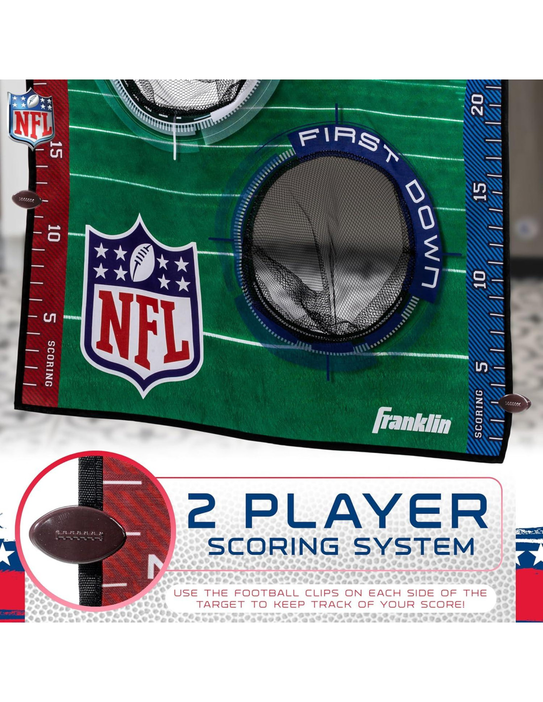 Toma tu posición como mariscal de campo y compite por la mayor cantidad de puntos con el Juego de Objetivo de Lanzamiento de Fútbol sobre la Puerta NFL de Franklin Sports! Divídanse en equipos o jueguen en solitario con un objetivo de fútbol que imita el juego tradicional de fútbol! Apunta al touchdown para anotar en grande, o consigue un primer down y obtén 4 lanzamientos más. El objetivo de pase cuenta con un sistema de puntuación para 2 jugadores integrado para que puedas llevar un registro de tus puntos a medida que completes cada pase. Este objetivo de 3 agujeros es perfecto para que los niños practiquen el lanzamiento y lleven sus habilidades ofensivas al siguiente nivel! Este set de juego de lanzamiento para niños viene completo con (1) objetivo de pase de 3 agujeros, sobre la puerta y (4) mini balones de 15.24 cm incluidos para que te dividas en equipos y compitas contra tus amigos y familiares! Apunta a la mayor cantidad de puntos para demostrar qué equipo es el Campeón de la NFL!