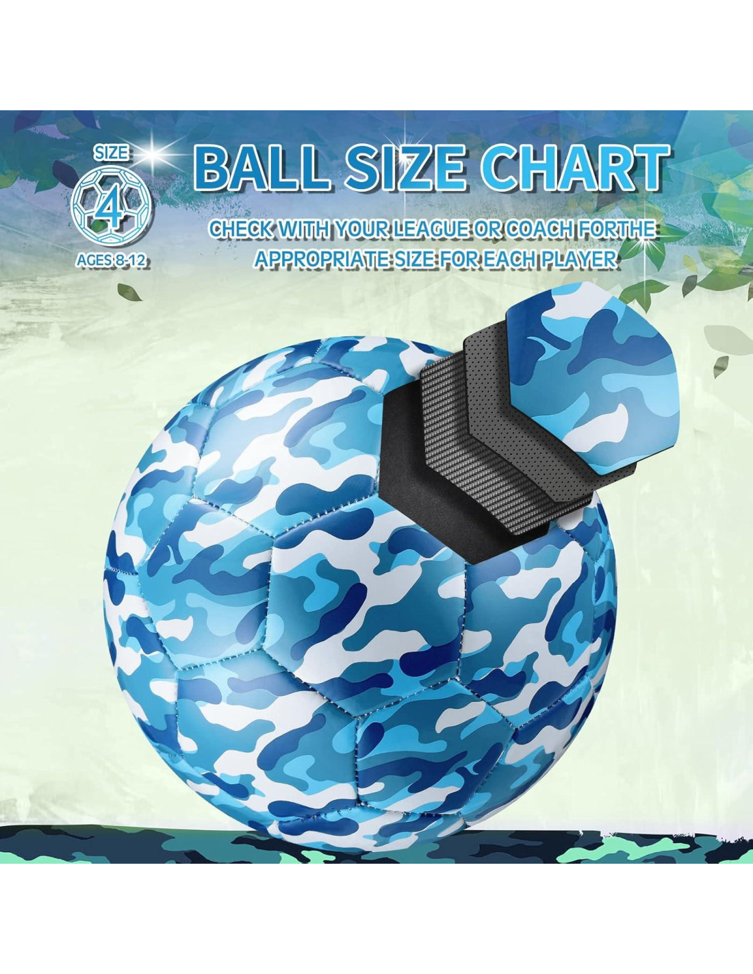 - Incluye el paquete: el paquete incluye 1 balón de fútbol tamaño 4 en color camuflaje azul y 1 bomba; El balón de fútbol tamaño 4 tiene aproximadamente 20 cm (7.87 pulgadas) de diámetro, el balón con tamaño y peso oficial es adecuado para jugar y practicar, el balón de fútbol en un estilo genial puede considerarse un regalo de fiesta y regalo de vacaciones para diferentes grupos de personas