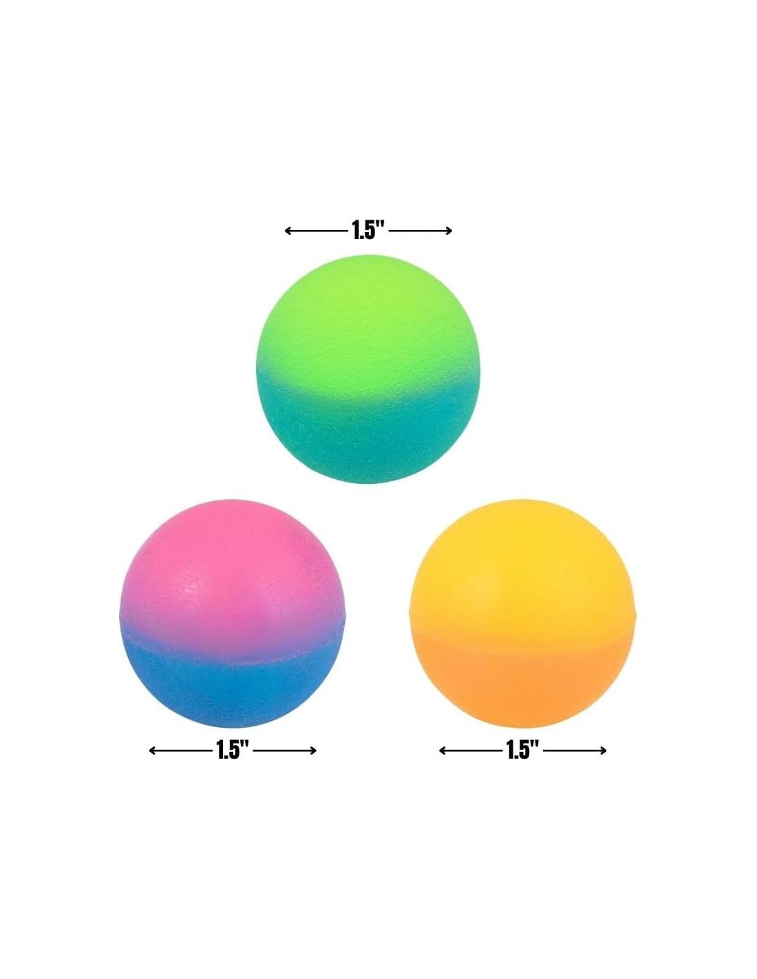 - PAQUETE DE 12: Vendido por docena, este paquete de 12 asegura que haya suficiente alegría rebotadora para todos. Comparte con amigos, familiares o compañeros de clase y observa cómo la diversión rebota de una persona a otra.