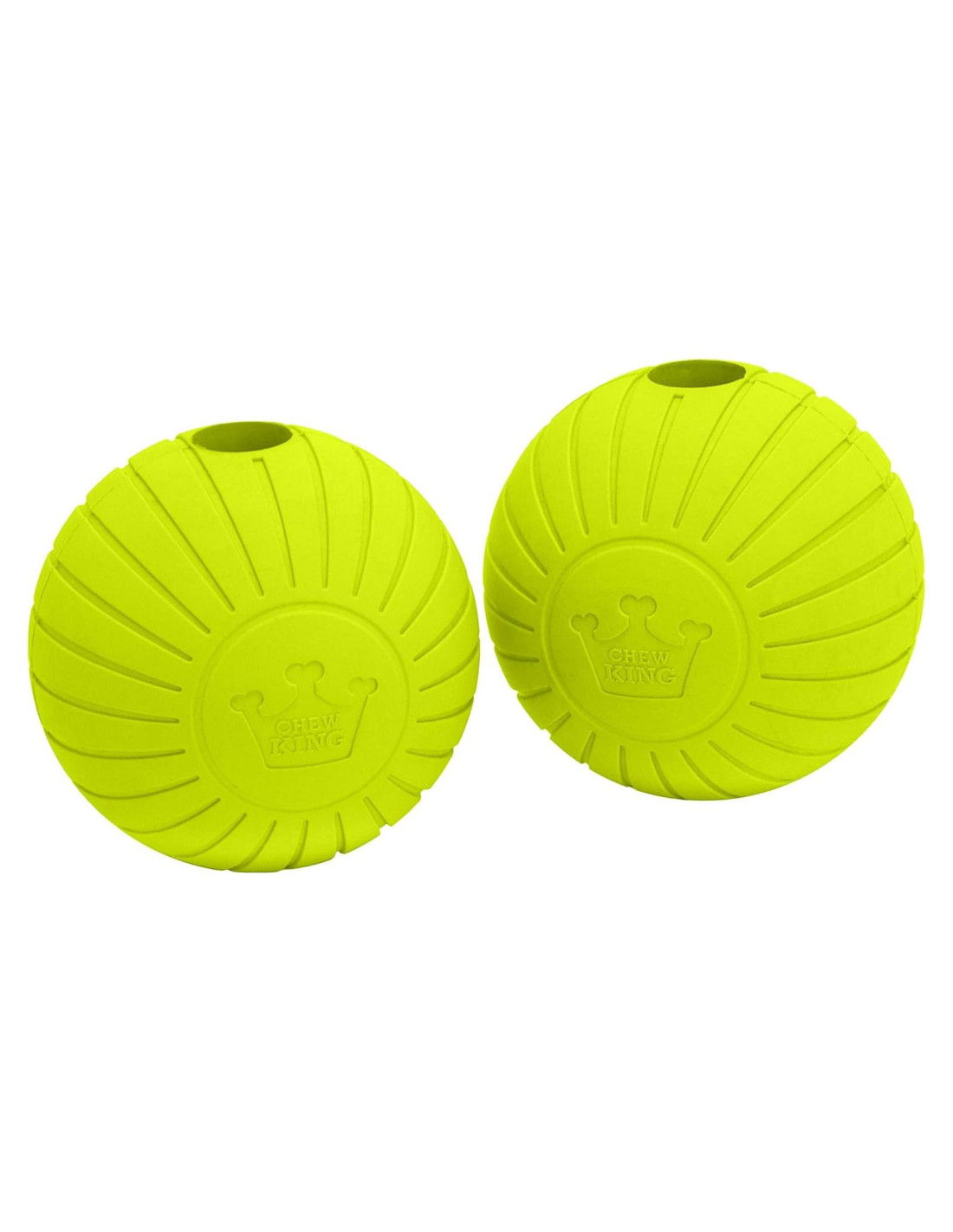Si tienes alguna pregunta sobre nuestros productos, nuestro departamento de servicio al cliente estará encantado de ayudarte. El servicio al cliente de Chew King se puede contactar en: info@sportpet. Seguro, a tu perro le encanta jugar a buscar. Pero puede que le encante más destruir pelotas de tenis. Si eso suena como tu cachorro, la pelota de caucho Chew King Supreme es para ti. Es un cuarto de libra (113.4 gramos) de caucho natural 100% sólido que puede soportar mordiscos y roer sin perder su eficacia como un fantástico juguete de buscar. Su rebote duro es excelente para jugar, y con todo ese peso, proporciona un entrenamiento de corta duración para tu amigo peludo. Mejor aún, puedes limpiar la pelota directamente en la rejilla superior de tu lavavajillas. Disponible en 2 tamaños. Nota: no estamos bromeando, esta pelota es pesada. ¡Ten cuidado de dónde y cómo la lanzas!