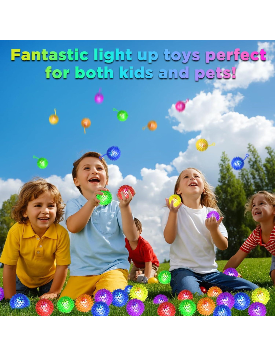 - Materiales Premium: Estas pelotas luminosas están hechas de goma suave de alta calidad, realizaremos una inspección de calidad antes de enviarlas a los clientes. Comparado con otros productos, nuestros productos no tienen olor fuerte, y las púas en ellas se pueden tocar sin preocuparse por lastimar las manos de los niños. Estas pelotas con púas brillantes definitivamente sorprenderán a tus hijos!