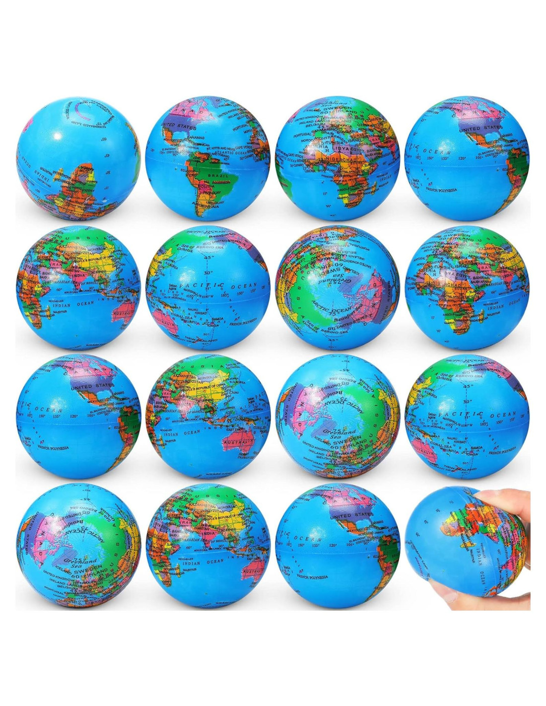 - Cantidad del paquete: el paquete incluye 60 piezas de pelotas de estrés del mundo que se pueden apretar, diseñadas con la apariencia de un globo terráqueo, incluyendo mapas de continentes en el planeta, con longitudes y paralelos