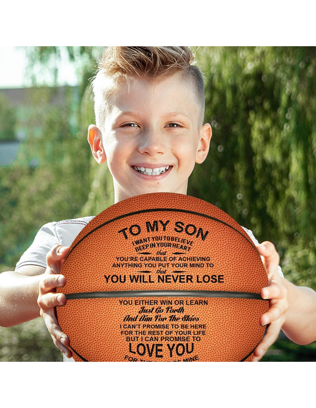 - REGALO VALORADO - Este es un hermoso balón de baloncesto con un mensaje significativo impreso en el balón que ayuda a que dure para siempre. Este balón de baloncesto impreso es perfecto!!! Un regalo que él atesorará toda su vida. El mejor presente que cualquiera podría desear, perfecto para un cumpleaños, vacaciones, aniversario, boda, Navidad.