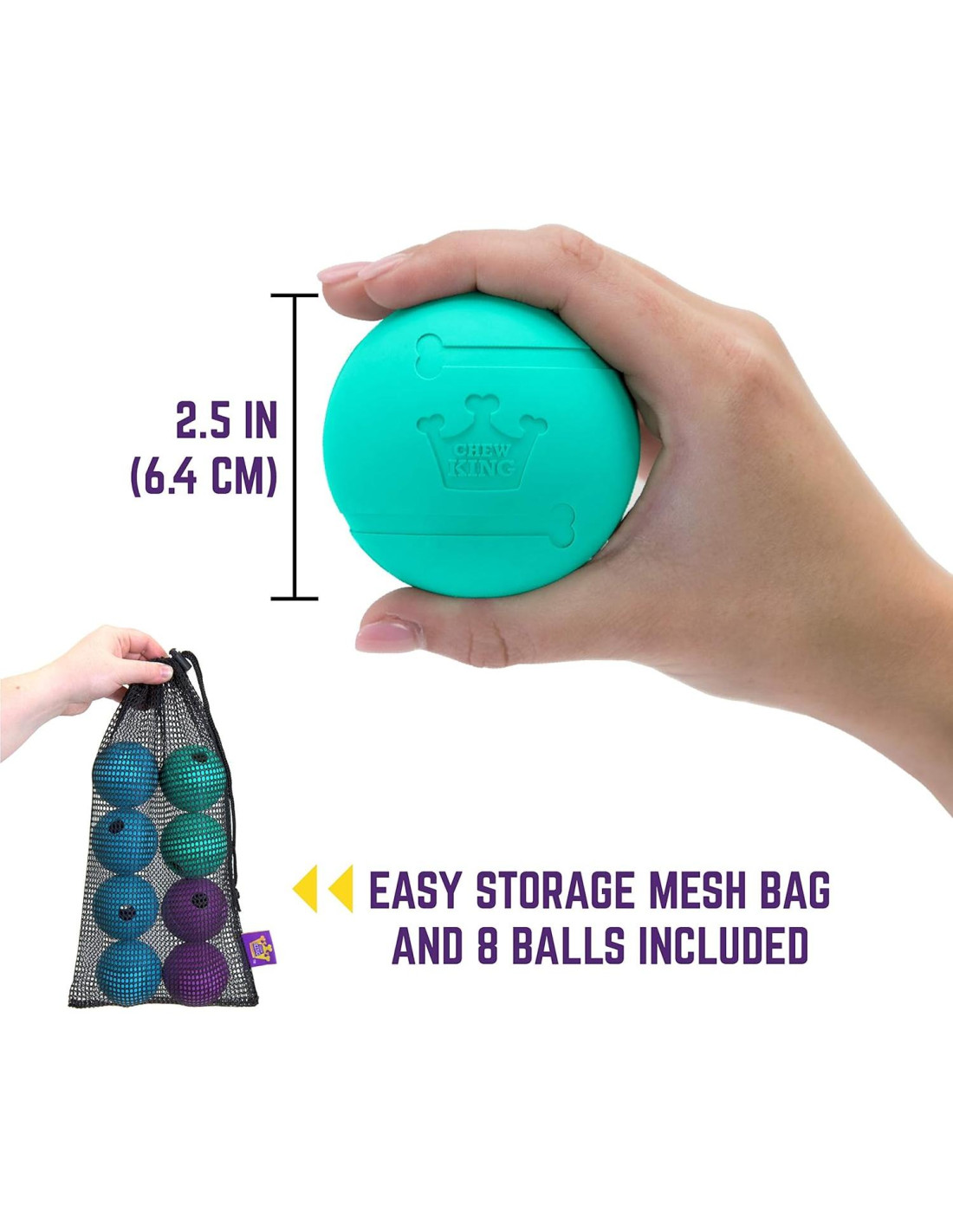 - Las pelotas de 6.35 cm encajan en el lanzador de pelotas Chew King 'mediano'.