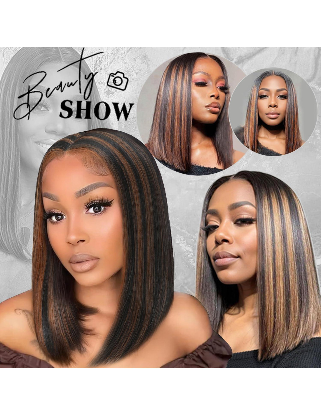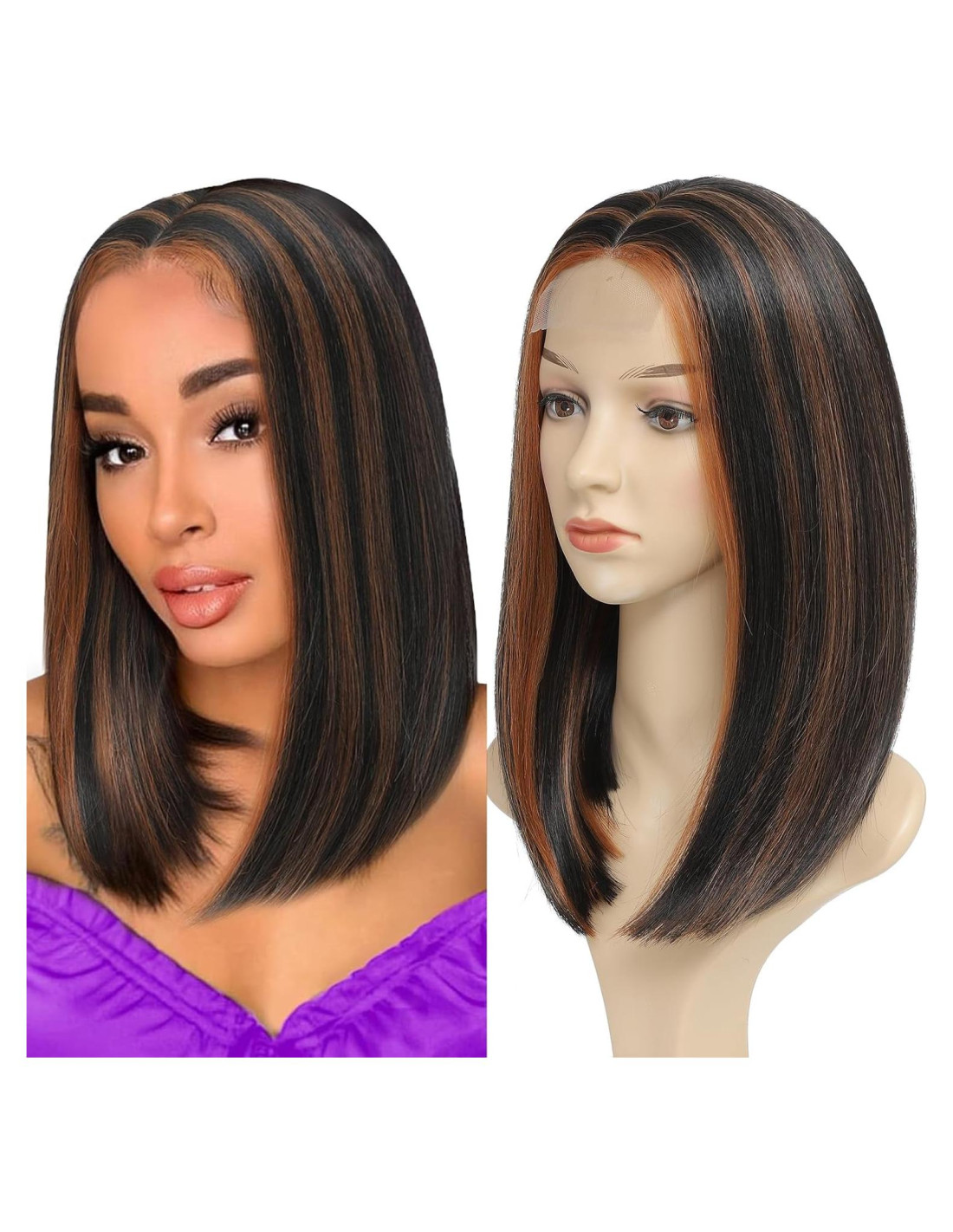 - [Corte Bob Recto] : Peluca bob marrón destacada parte media; encaje atado a mano de 3.75 por 2.25 pulgadas (9,53 por 5,72 cm), textura ligeramente recta y yaki, estilo femenino completo; te brinda un nuevo look encantador y bonito; ¡ideal para mujeres negras y blancas!