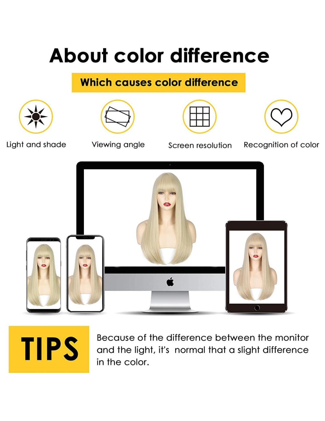- [Consejos Útiles] Si quieres probar un nuevo peinado, solo prueba esta peluca rubia larga. Cualquier pregunta sobre la peluca con flequillo, eres bienvenido a contactarnos. (Puede haber una ligera diferencia de color debido a diferentes monitores y luces.)
