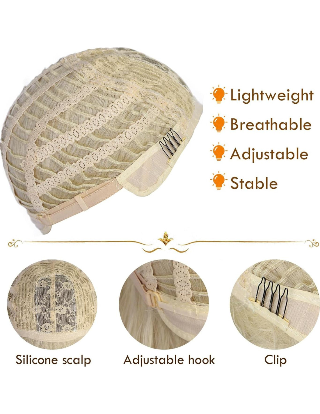- [Fácil y Ligera de Usar] Agita las pelucas largas antes de usarlas, esto hará que la peluca de cabello largo se vea más natural. Puedes darle forma fácilmente a la peluca recta para mujeres después de usarla con los dedos, y también puedes rociar un poco de laca en la peluca rubia ceniza. La peluca ligera es una peluca rubia larga perfecta para uso diario, cosplay, halloween, citas, etc.