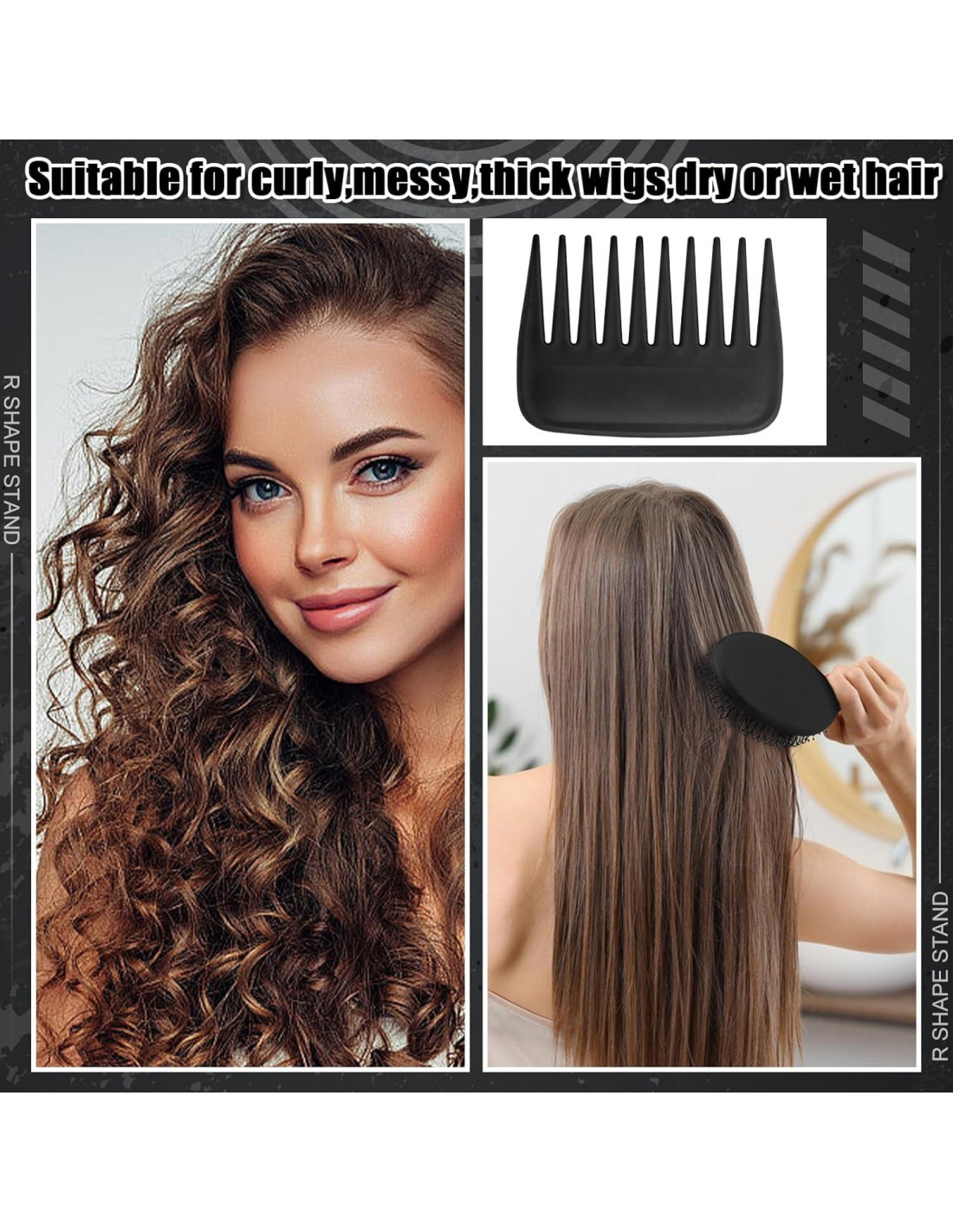 - Cepillo y peine para peluca: El juego incluye 2 cepillos para peluca y un peine de dientes anchos, que se puede usar para extensiones de cabello, cortes de cabello y pelucas sintéticas. Hay un gran espacio entre los dientes del peine para peluca, que puede pasar fácilmente a través de la peluca sin tirar o dañarla, manteniendo la condición de la peluca