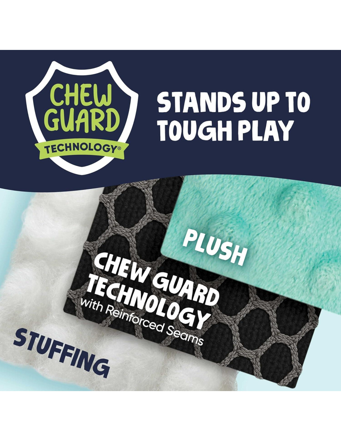 - Duradero y Resistente: ¡Supera a los juguetes de peluche estándar! Cada juguete está hecho con una malla acolchada Chew Guard super resistente y costuras reforzadas que soportan el juego duro y la masticación satisfactoria.