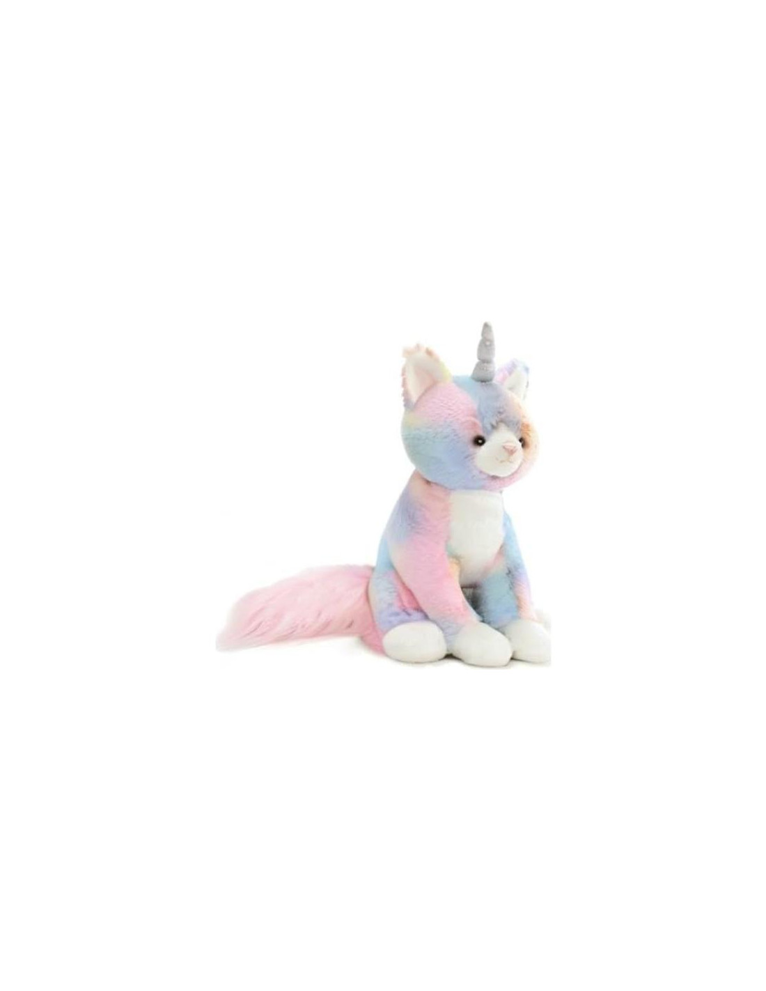 - GATO DE PELUCHE + UNICORNIO: Este único y caprichoso peluche caticorn presenta remolinos de pelaje de colores arcoíris pastel acentuados por un cuerno iridiscente brillante y una cola esponjosa con brillos fluyendo a través de ella. Perfecto para fanáticos de los unicornios y dueños de gatos por igual