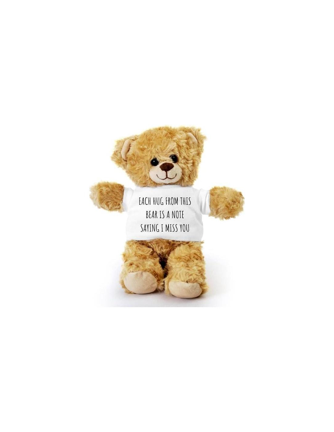 - Este oso de peluche está hecho de 100% poliéster con relleno de peluche, ojos de plástico y boca y nariz cosidas con hilo. La camiseta también es 100% poliéster. Este oso es un regalo atesorado y único con la mejor manera de mostrar tu amor.