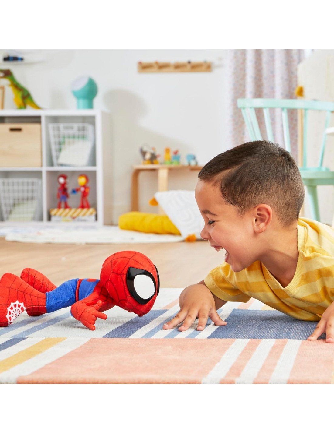 - HAZ EL BAILE DE SPIDEY: Cuando Spidey dice, "¡Redes arriba! ¡Hagamos el Baile de Spidey!", ¡tiene un baile genial para compartir! Activa el modo de baile y los niños y niñas pueden "Hacer el Spidey" junto a él.