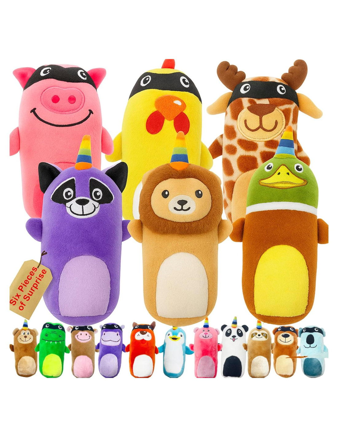 - SUPER VALOR Y GRAN DIVERSIÓN: Incluye 6 Diseños Súper Lindos de Juguetes Squeaky para Perros Sorpresa para Razas Pequeñas, Medianas y Grandes. Hay un Total de Más de 40 Diseños Divididos en Dos Temas - Tema Ninja y Tema Unicornio - Y Docenas de Diseños de Personajes Animales.