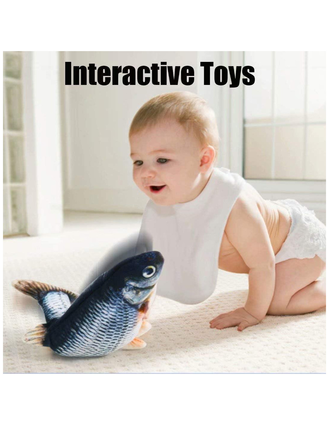 Descripción del producto Nombre: Peces de Peluche Interactivos Eléctricos en Movimiento Tamaño: 28 x 13 cm Material: peluche Paquete incluido: 1 x juguete de peluche interactivo 1 x cable USB Carga USB Juguete de peluche recargable por USB mejorado, es de carga rápida y proporciona mucho más tiempo de juego después de cargar completamente. Materiales de algodón y peluche de alta calidad, la textura es suave. Juguete de pez de peluche realista Usando proceso de impresión 3D, diseño de forma de pez claro y realista. El juguete de pez de peluche eléctrico parece un pez real. Juguete de peluche lavable El muñeco de pez de peluche se puede lavar y reemplazar. Asegúrese de sacar el motor interno al lavar el juguete.