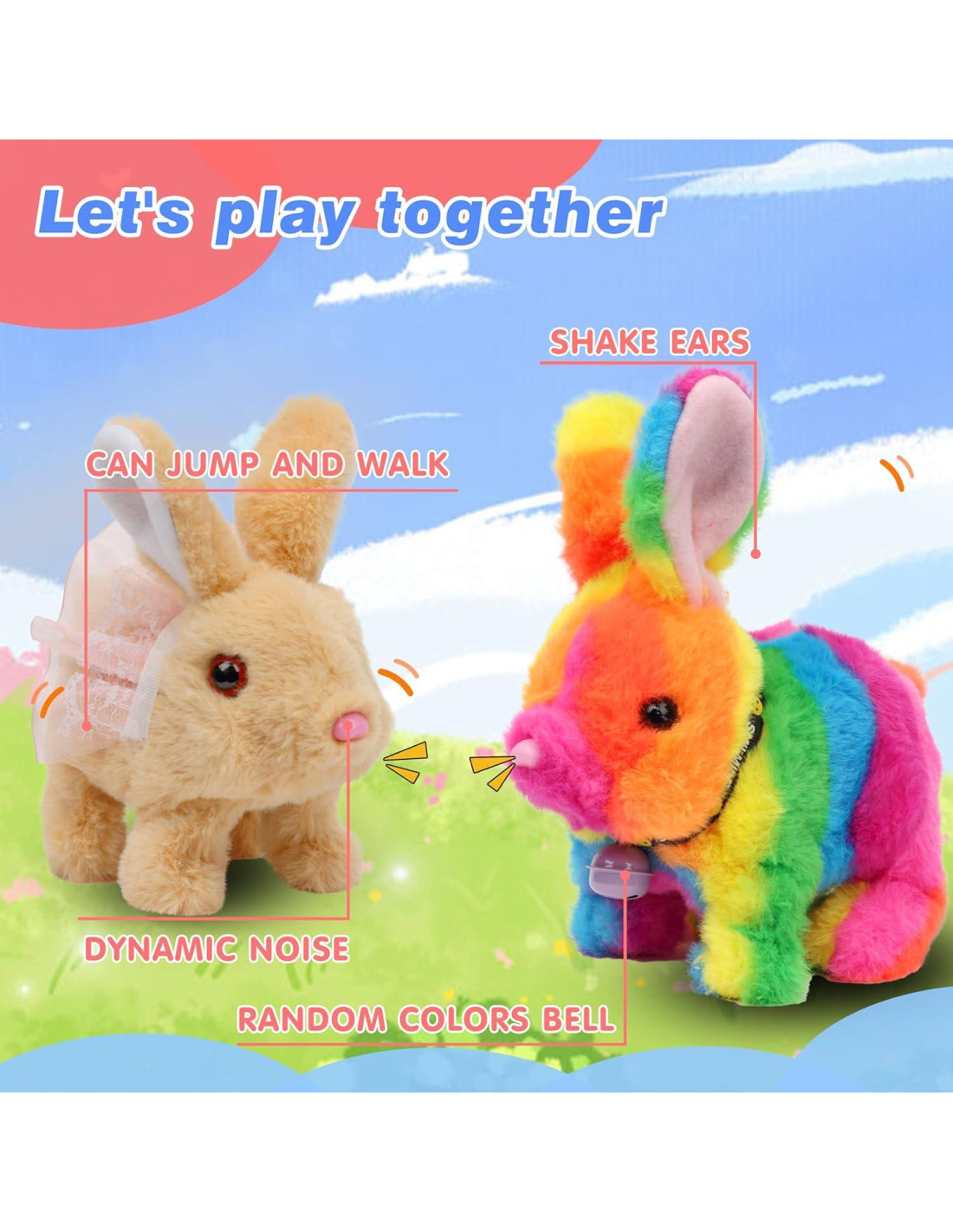 - ACERCA DEL CONEJO SALTARÍN: Este adorable conejo mide aproximadamente 17.78 cm de largo, el tamaño portátil y el peso ligero pueden permitir que los niños lo lleven a todas partes y jueguen con él. El conejo saltarín podría atraer fácilmente la atención de los niños, te da más espacio y tiempo para hacer tus propias cosas. Inspira a tus hijos y sorprende a amigos o invitados con un regalo interactivo ideal para cualquier ocasión. Deja que la mente de tus hijos corra libremente, conecta su imaginación y disfruta de un tiempo de juego feliz.
