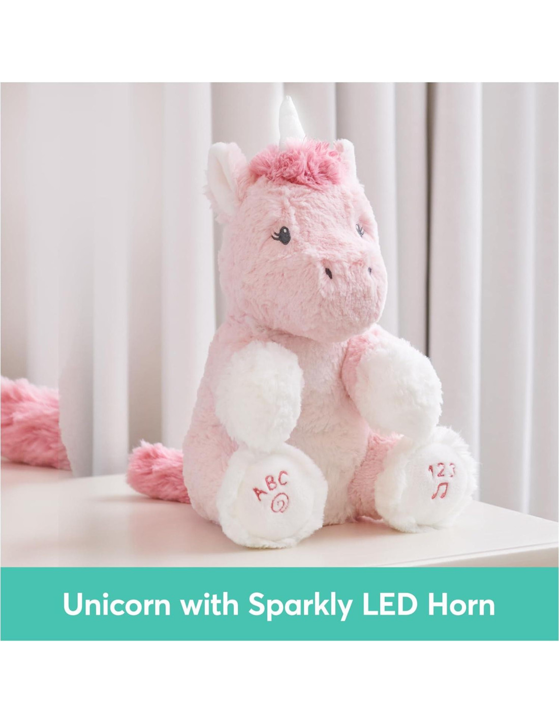 Alora, el unicornio rosa mágico, está listo para cantar y aplaudir con el bebé mientras aprenden sus números y ABCs. Baby GUND se enorgullece de presentar a Alora, un unicornio caprichoso con pelaje rosa claro, una melena rosa brillante, cola a juego y un cuerno plateado brillante que se ilumina. Como la última adición a nuestra colección de peluches animados, Alora cobra vida con la presión de cualquiera de sus patas y utiliza dos canciones y movimientos de aplausos para enseñar y entretener al bebé. Los usuarios pueden presionar cualquiera de sus patas para hacer que cante una linda canción de conteo o la canción del alfabeto para enseñar al bebé sus ABCs y números. Los padres incluso pueden ajustar el volumen para crear una experiencia de juego más personalizada para su pequeño. Alora involucra a los bebés mientras actúa como un juguete sensorial innovador, ayudando a desarrollar sus habilidades motoras y promoviendo el juego táctil mientras los mantiene riendo. Este unicornio abrazable y ultra suave es lavable a mano para una fácil limpieza y se envía en una caja y bolsa de polietileno protectora. Se requieren 3 baterías AA (incluidas). Perfecto para edades de 0 en adelante.