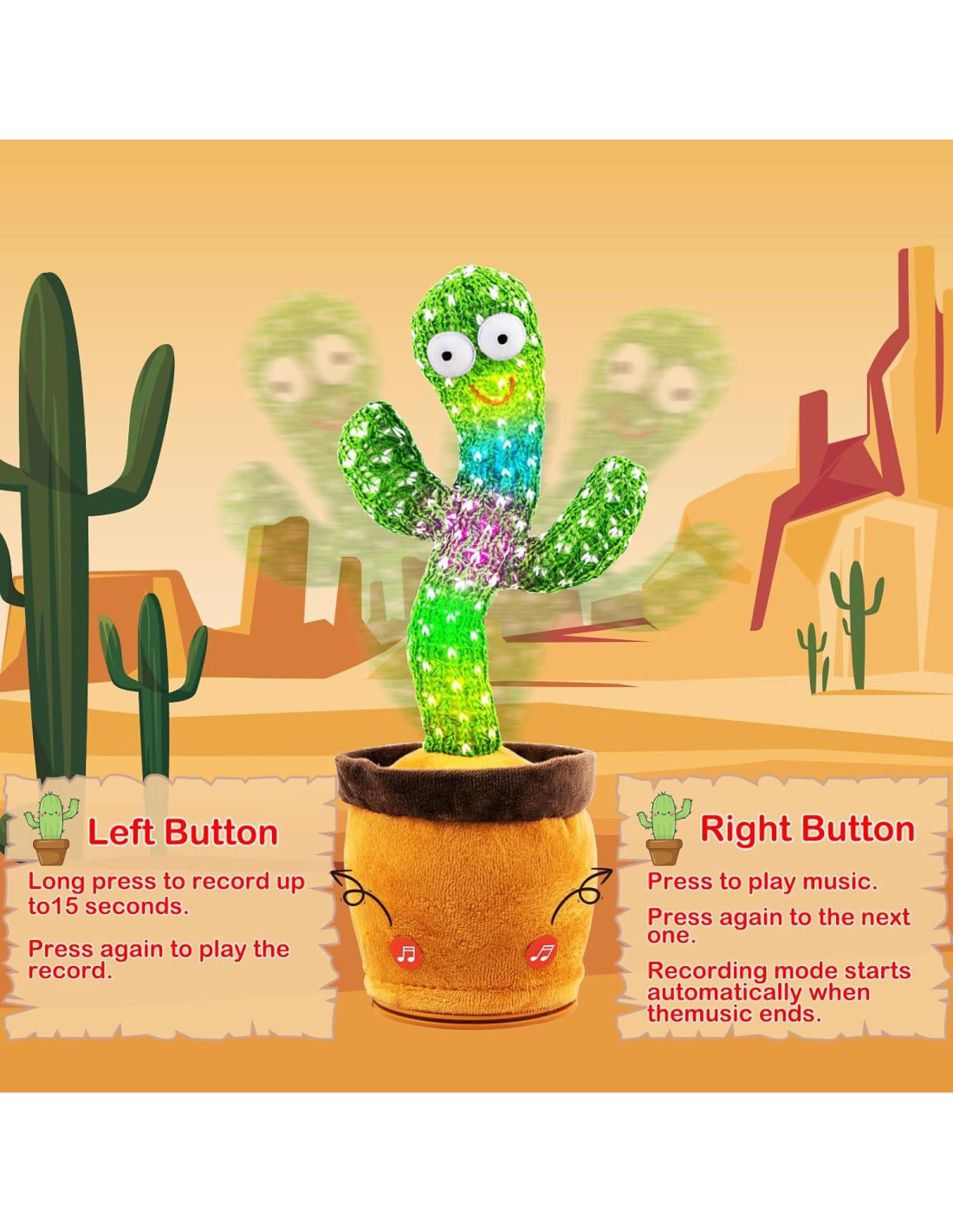 - Juguete Cactus Hablante y Bailarín: Juguetes cactus hablantes y bailarines Qrooper para bebés niños y niñas. Nuestro juguete cactus hablante y bailarín es un regalo para niños que incluye 120 canciones populares y alegres, y el juguete de peluche cactus bailará con la música, emitiendo luces LED de colores parpadeantes rítmicas.