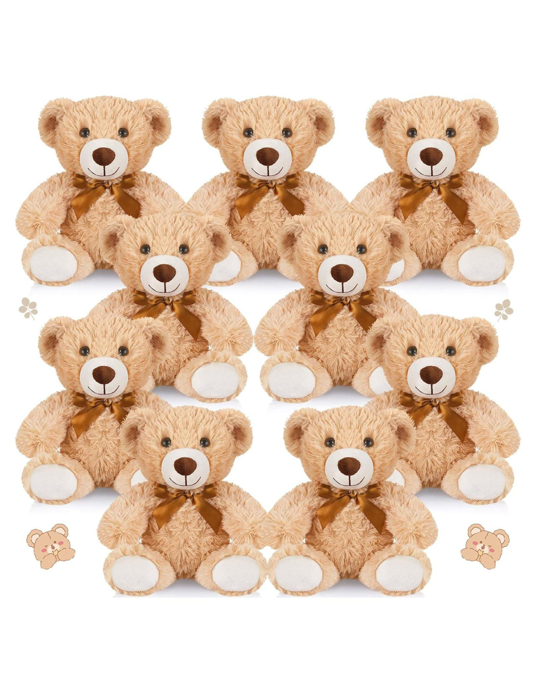 - Juego de Regalo: recibirás 9 piezas de osos de peluche en marrón claro, cada oso está decorado con un lindo lazo; La imagen clásica del oso con cantidad suficiente y combinación de colores puede satisfacer tus necesidades de regalo y decoración