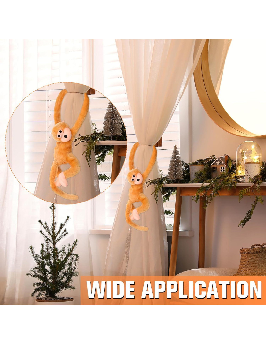 - Diseño Interesante: con el diseño de cierres de gancho y bucle en las manos, el mono de peluche es fácil de llevar y colgar en los pilares de las puertas, escaleras, cortinas, árboles y otros lugares para decoraciones