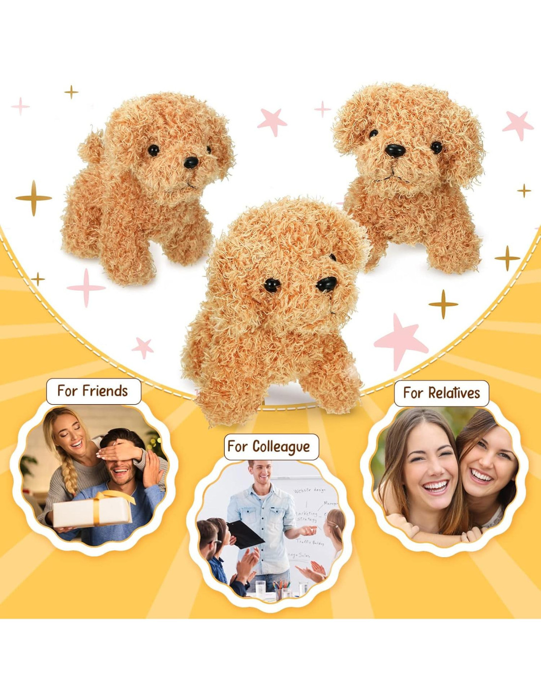 - Buenas Ideas de Regalos: los animales de peluche de perro se pueden aplicar como regalos lindos y cálidos para tus familias, amigos, niños y mascotas en cumpleaños, regreso a clases, fiesta de Pascua, fiesta de primavera, Día de San Valentín, Halloween, Navidad, etc.; Los cachorros de peluche también se pueden fijar o colocar en la mesa, escritorio, mesita de noche, sofá, etc.