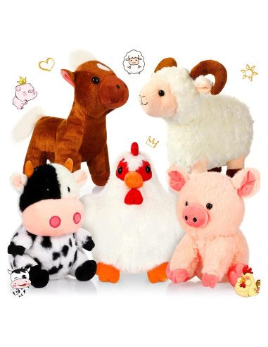 - Conjunto de Animales de Granja de Peluche: obtendrás 5 piezas de animales de granja de peluche, que incluyen vaca de peluche, caballo de peluche, oveja de peluche, gallo de peluche y cerdo de peluche; Varios estilos de juguetes de animales de peluche pueden satisfacer la preferencia personal de tu hijo y hacer que estén más activos