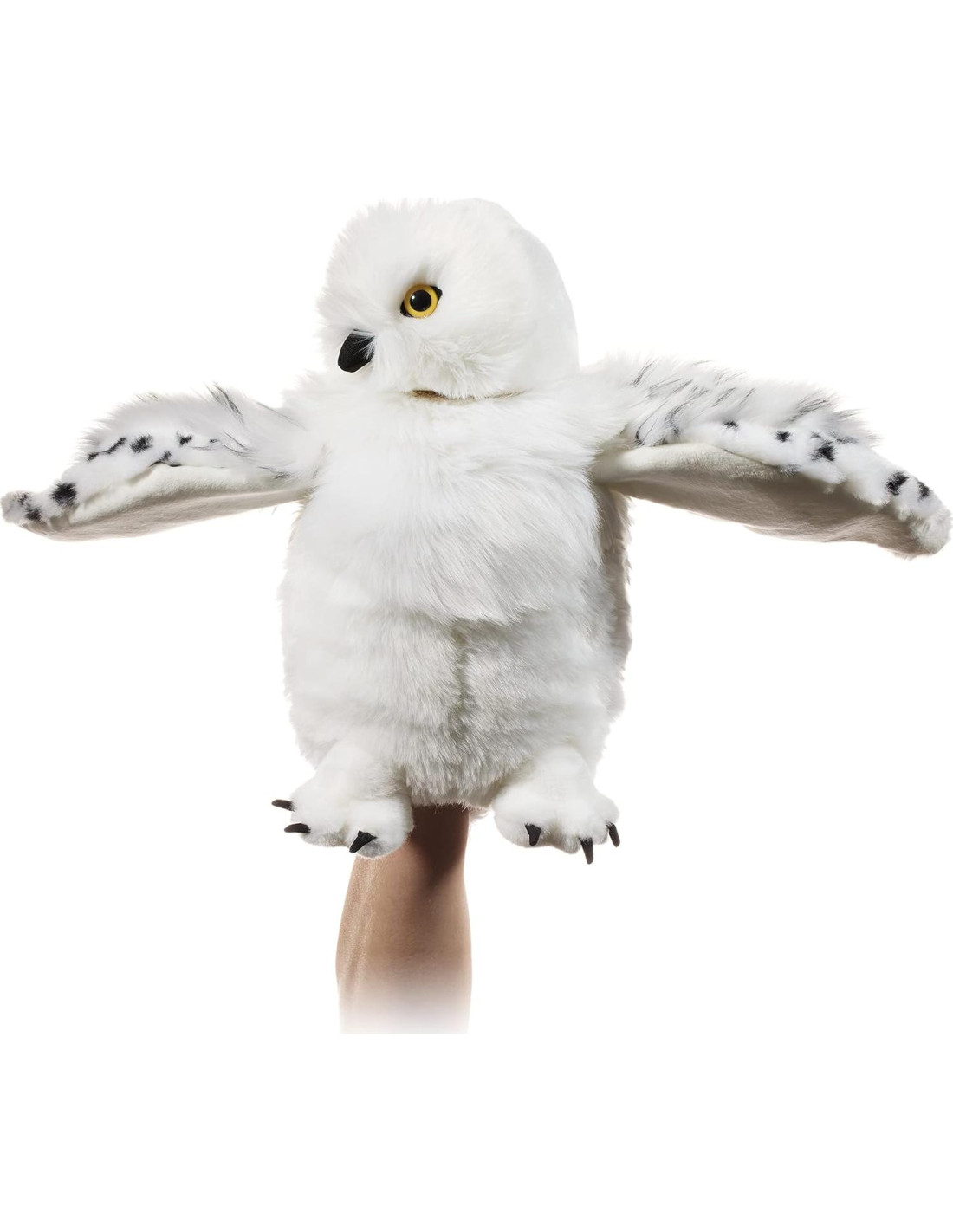 Peluche de Hedwig auténtico oficialmente autorizado por Warner Bros. Peluche altamente detallado y suave de 30.48 centímetros de altura. El muñeco de mano cobra vida con movimiento y sonido al mover la cabeza y las alas con controles internos. El Peluche Electrónico Interactivo de Hedwig es un regalo perfecto para cualquier fan de Harry Potter
