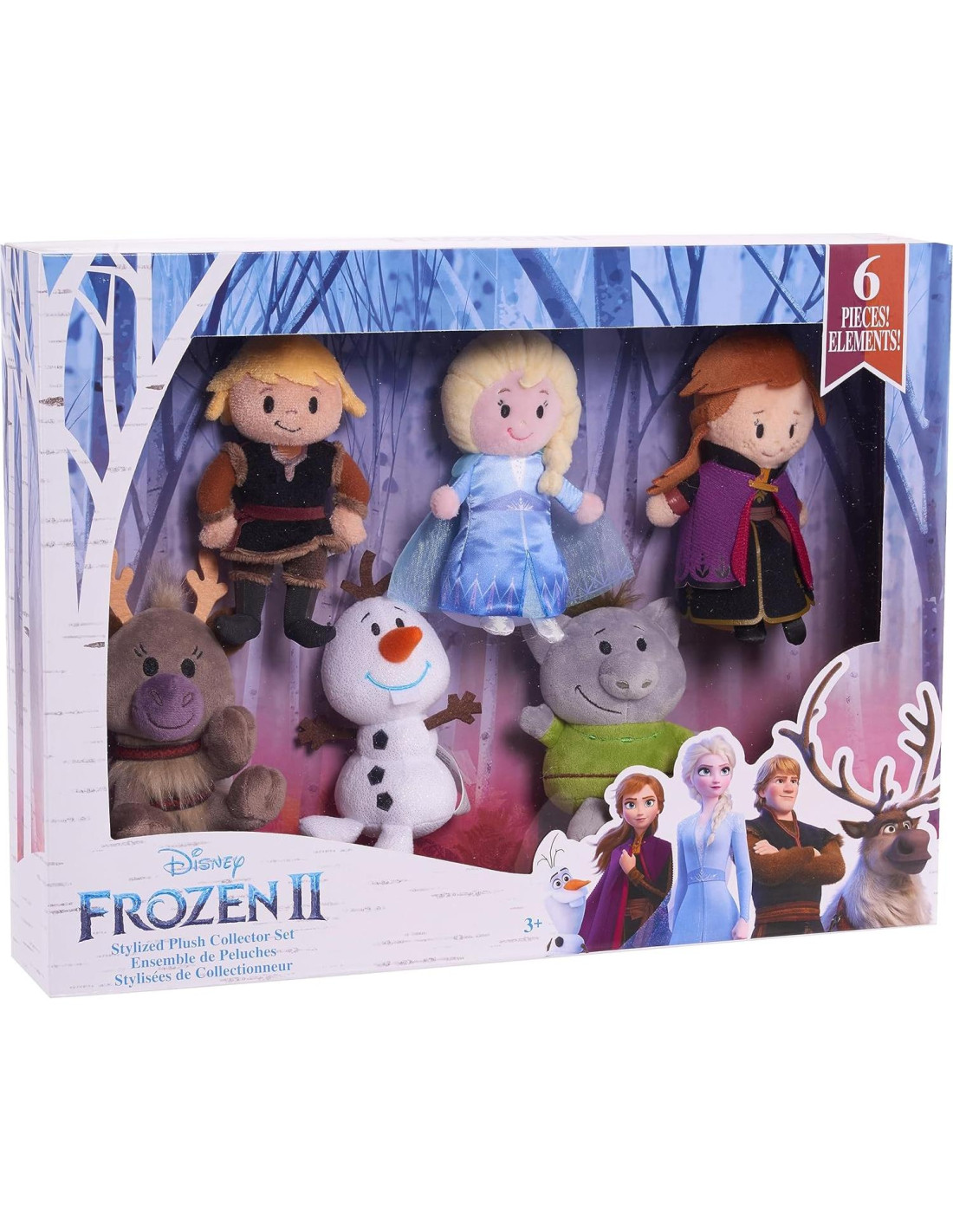 - El Conjunto de Colección de Peluches Estilizados de Disney Frozen 2 incluye: Anna, Elsa, Kristoff, Olaf, Sven y Troll