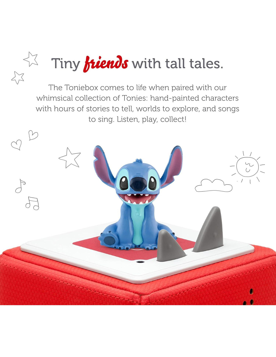 Prepárate para una historia original sobre una niña independiente llamada Lilo y su "perrito" alienígena adoptado, el travieso Stitch, un experimento genético fugitivo de un planeta lejano. Después de aterrizar de emergencia en la Tierra, Stitch causa estragos en las Islas Hawái, pero también aprende sobre lealtad, amistad y 'ohana, la tradición hawaiana de la familia. Incluyendo música de la película original, hay emoción y entretenimiento para cada miembro de tu 'ohana. Tiempo total de ejecución es aproximadamente 29 minutos. Canciones: 1) Hawaiian Roller Coaster Ride, 2) He Mele No Lilo. Historia: 3) Lilo & Stitch. Un Tonie para todos. Los Tonies son personajes que presentan contenido, historias y canciones de una colección en constante crecimiento de favoritos modernos y clásicos atemporales. Cambiar historias es tan simple como cambiar el Tonie en tu Toniebox. Con socios como Disney, DreamWorks, GoNoodle y Sesame Workshop, es una colección llena de variedad. La biblioteca de contenido de Tonies presenta historias y canciones mientras también se enfoca en lecciones educativas, ejercicios de atención plena, asistencia para la siesta y rutinas, y creando tu propio contenido con Creative-Tonies. La Toniebox se vende por separado y es un nuevo sistema de audio diseñado para pequeños oyentes. Enciéndelo, coloca un Tonie encima y deja que la aventura de audio comience. Los Tonies brindan a tu familia una experiencia sin pantallas y que fomenta la imaginación, y cada Tonie trae nuevas historias o canciones.