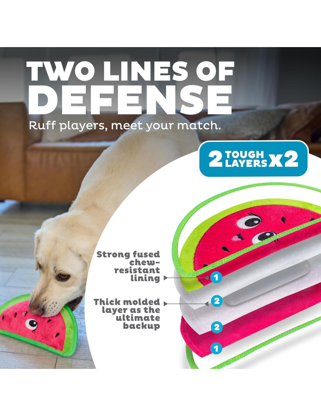 Tough Skinz es la última innovación en juguetes resistentes de Outward Hound que combina los aspectos irresistibles de un juguete de peluche con la resistencia premium de un juguete moldeado. Respaldado por no una, sino DOS capas de durabilidad a cada lado, Tough Skinz presenta un forro resistente a mordidas fusionado fuerte debajo de sus suaves exteriores de peluche, además de una gruesa capa moldeada debajo para proporcionar la máxima durabilidad contra los jugadores más rudos. Es lo mejor de ambos mundos, combinando la resistencia aprobada por los dueños de mascotas con todo lo que a tu perro le encanta de los juguetes de peluche. La protección de doble capa ha sido puesta a prueba por jugadores rigurosos y los masticadores más determinados para asegurar diversión duradera. Para aún más resistencia, cada juguete Tough Skinz cuenta con costuras triples así como costuras cubiertas. Lánzalos, atrapa, juega un juego de tira y afloja, nuestros Tough Skinz están diseñados para resistir cualquier tipo de juego que tu perro prefiera. Sin relleno y lleno de un gran sonajero, este juguete eleva el entretenimiento con una durabilidad superior como la máxima ventaja. ADVERTENCIA: Solo para perros. Contiene piezas pequeñas. El producto contiene un hilo continuo para mejorar la durabilidad. Si el hilo se deshace, por favor descontinúa su uso. Mantener fuera del alcance de los niños. Al elegir un juguete, asegúrate de elegir un tamaño apropiado para tu perro. Ningún juguete es indestructible. SIEMPRE supervisa a tu perro cuando use un juguete de cualquier tipo. Inspecciona los juguetes regularmente en busca de daños y retira y reemplaza si están rotos, o si las partes se separan, ya que puede resultar en lesiones graves. En última instancia, la seguridad de tu mascota es tu responsabilidad.