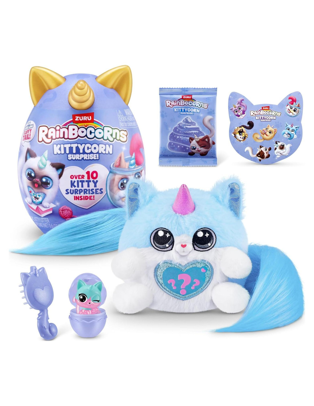 Los gatitos más perfectos han salido en Rainboville y están listos para jugar en Kittycornia. Con nuevas colas esponjosas, súper suaves y súper largas, estos kittycorns se convertirán en tus mejores amigos. ¿Cuál Kittycorn abrirás? ¡Podría ser el raro Kittycorn Munchkin! Cuida de tu nuevo amigo perfecto con el peine incluido. ¡No olvides abrir tu boo-boocorn de su huevo también! Más diversión te espera con el compuesto de arena para gatos elástico. ¡Hay más de 10 sorpresas gatunas dentro!