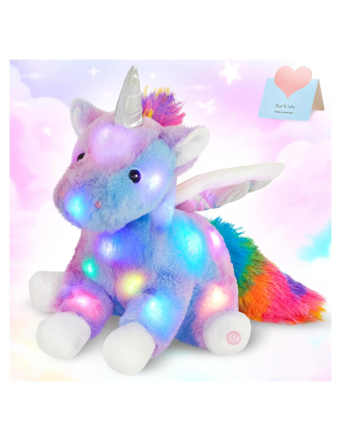 - REGALO PARA NIÑOS PEQUEÑOS: Este unicornio de peluche iluminado tiene aproximadamente 16.5' (42 cm) de altura sentado, lo que es un tamaño perfecto tanto para niños como para adultos para acurrucarse. Puede ser un juguete suave o una decoración del hogar, o un compañero nocturno para niños que temen a la oscuridad. Los niños también pueden aprender más sobre los animales con la ayuda de este unicornio. Será una buena opción para niños, amigos, familias en cumpleaños, Navidad, Halloween, San Valentín u otros festivales.