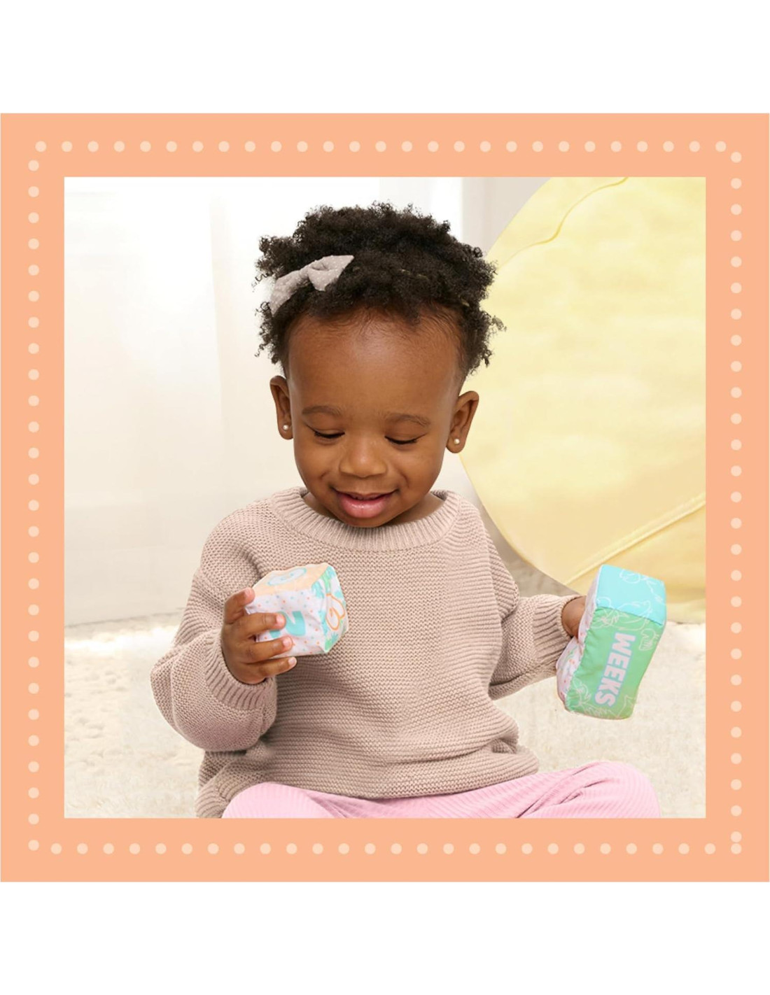 - Marca los Hitos: El irresistible peluche Stitch ayuda a conmemorar cada hito con 3 bloques de peluche, 2 con lados numerados, y 1 con lados que dicen 'Semana', 'Mes' y 'Año'.