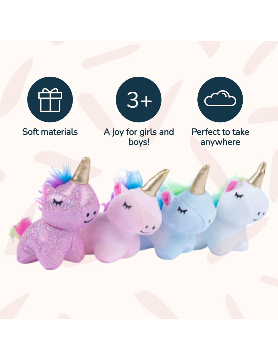 - Los Compañeros Más Lindos: Con una estética de arcoíris, estos animales de peluche unicornio y sus compañeros bebés unicornio mantienen la imaginación de tu hijo entretenida; ideales para viajar o como adorables decoraciones para la habitación