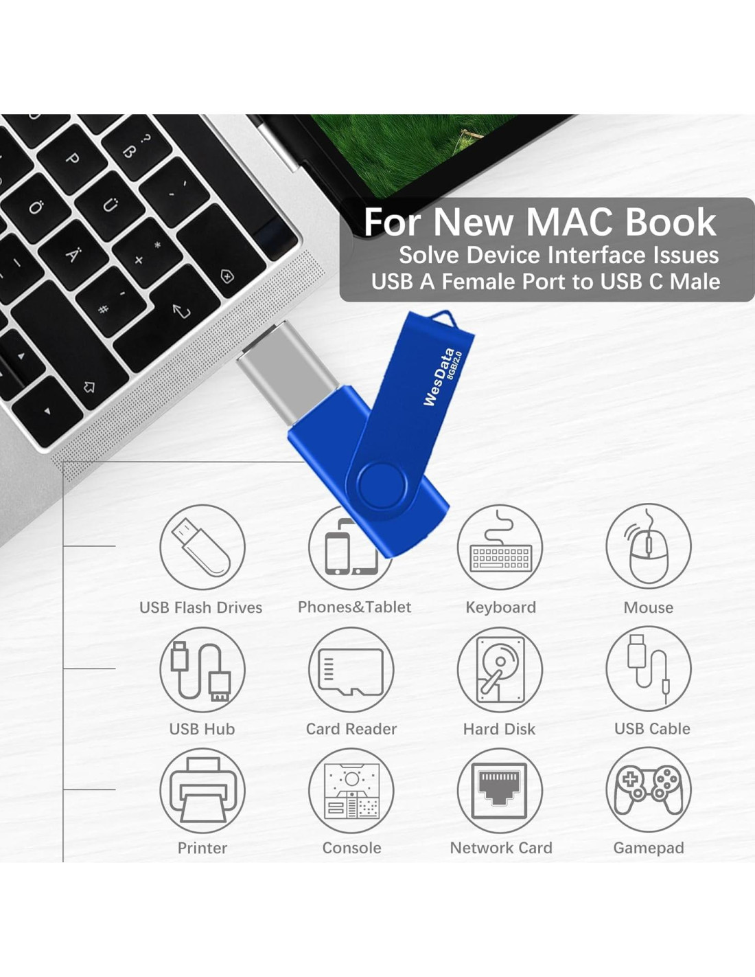 - Todo en color azul 8GB Unidad Flash USB con un adaptador de interfaz USB C, es más ampliamente utilizado para dispositivos con nuevas interfaces Tipo C.
