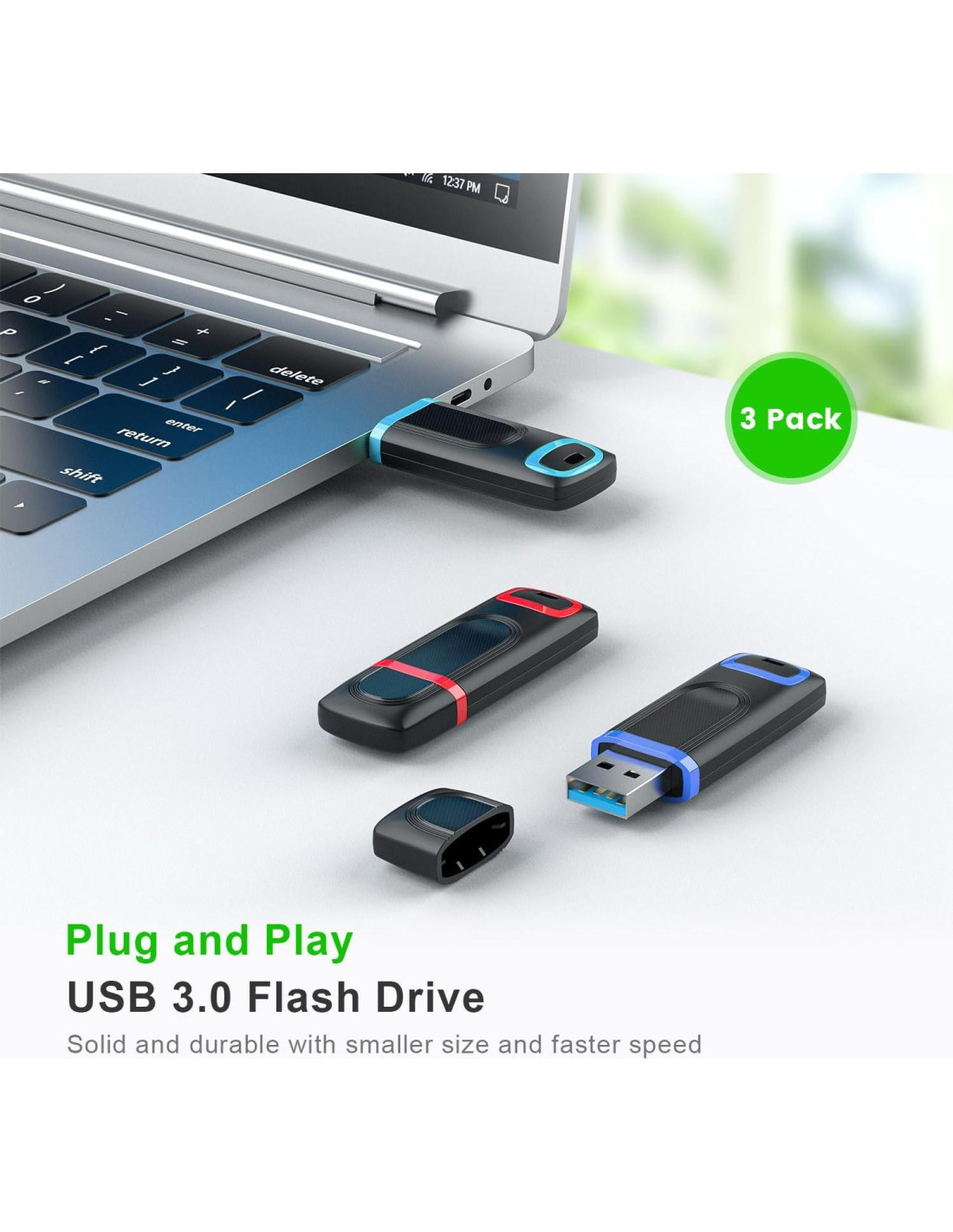 - Gran Capacidad: 3 Paquete de unidades USB 3.0 de 128GB almacena hasta 12 horas de video 4K, o hasta 40 horas de video 1080P, 75800 fotos, o 38800 canciones (Nota: La capacidad utilizable real puede ser menor que la reconocida debido a algoritmos de capacidad).