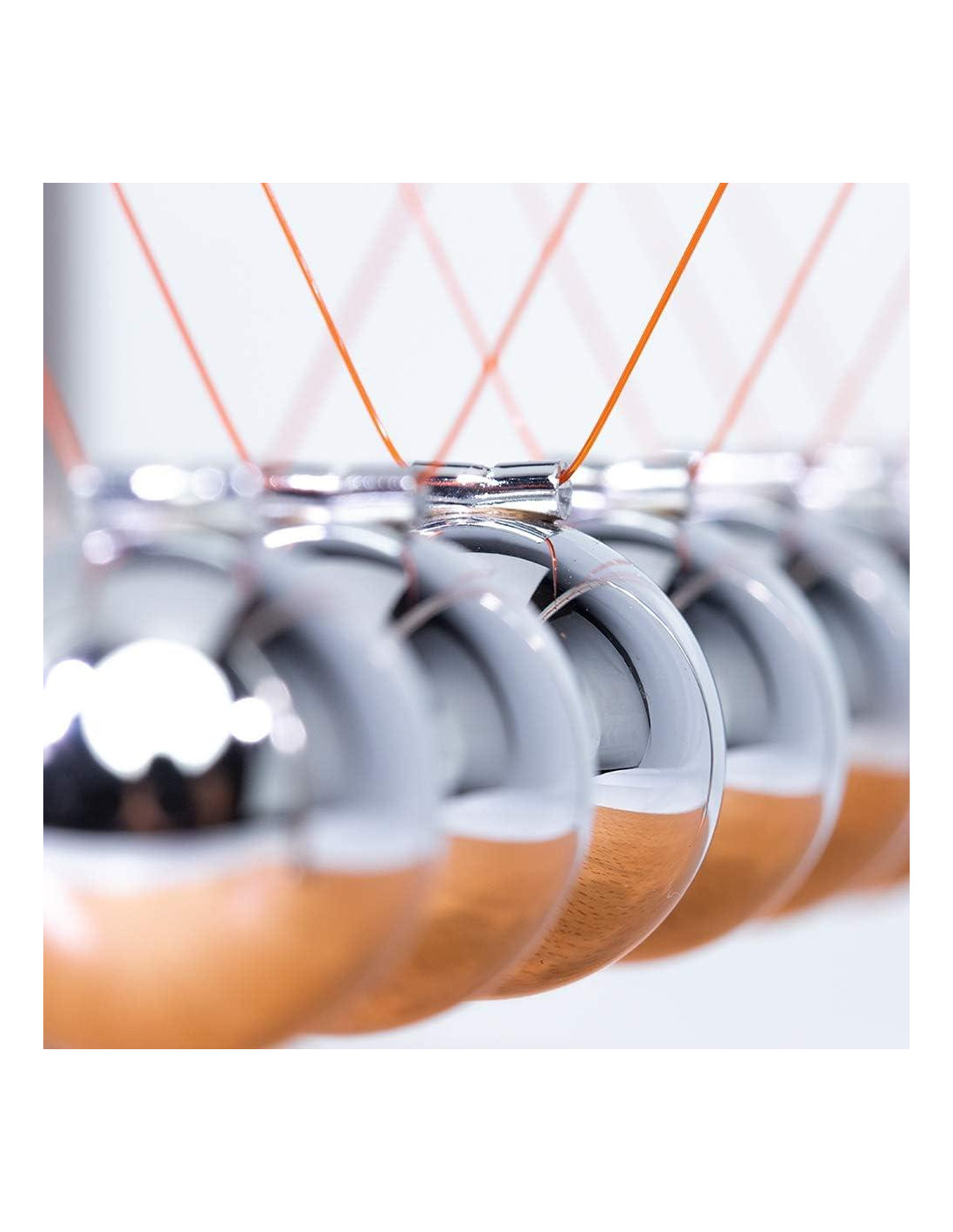 - SUPERIOR CALIDAD - Nuestro péndulo de Newton está hecho de barra de acero cromado de 8mm, acero de rodamiento de 20mm, nylon de alto impacto, tecnología nano ultra delgada que proporciona un soporte oscilatorio extremadamente duradero, duradero para un uso prolongado. La búsqueda del espíritu artesanal nos inspiró a producir continuamente productos de alta calidad