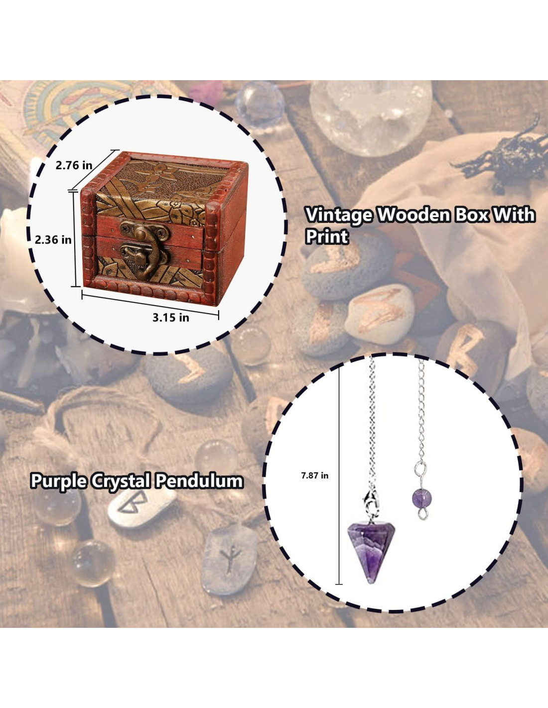 - Juego de Péndulo de Tarot - Obtendrás 3 dados de tarot grabados en resina, un péndulo de amatista, un tablero de péndulo para adivinación y una pequeña caja de almacenamiento vintage, dándote todo lo que necesitas para la adivinación