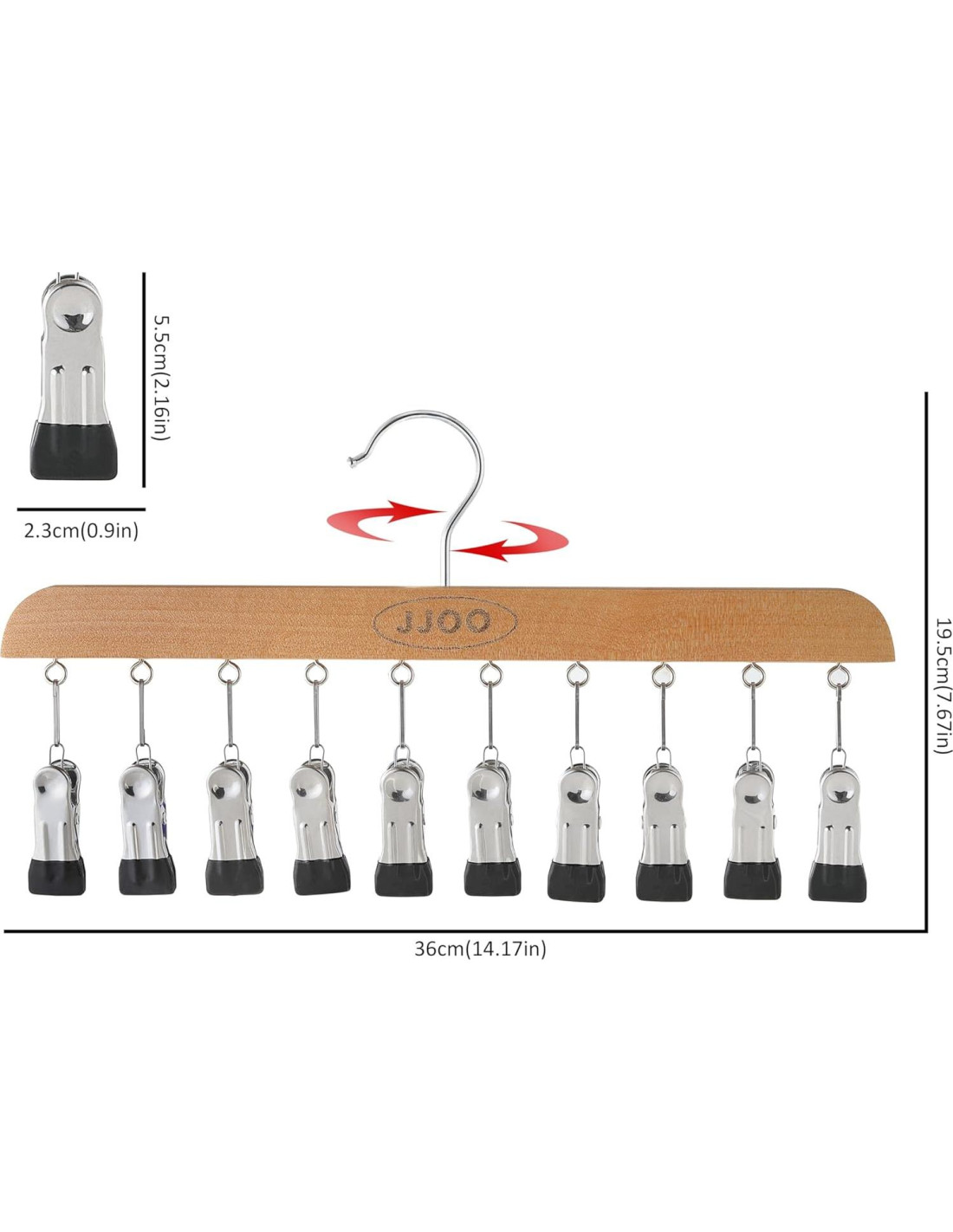 Con nuestra percha con clips, lograr un closet bellamente organizado nunca ha sido tan fácil. Ya seas un entusiasta de la moda con un guardarropa extenso o alguien que busca deshacerse del desorden y optimizar el espacio de su closet, nuestro organizador de leggings lo hace sencillo. Experimenta la alegría de un closet bien organizado donde todo tiene su lugar, gracias a nuestras innovadoras y prácticas perchas para jeans. Eleva la estética de tu closet con la elegancia atemporal de un mango de madera natural. Fabricado con madera de alta calidad, nuestro percha con clips no solo añade un toque de sofisticación a tu closet, sino que también ofrece una durabilidad y resistencia excepcionales.