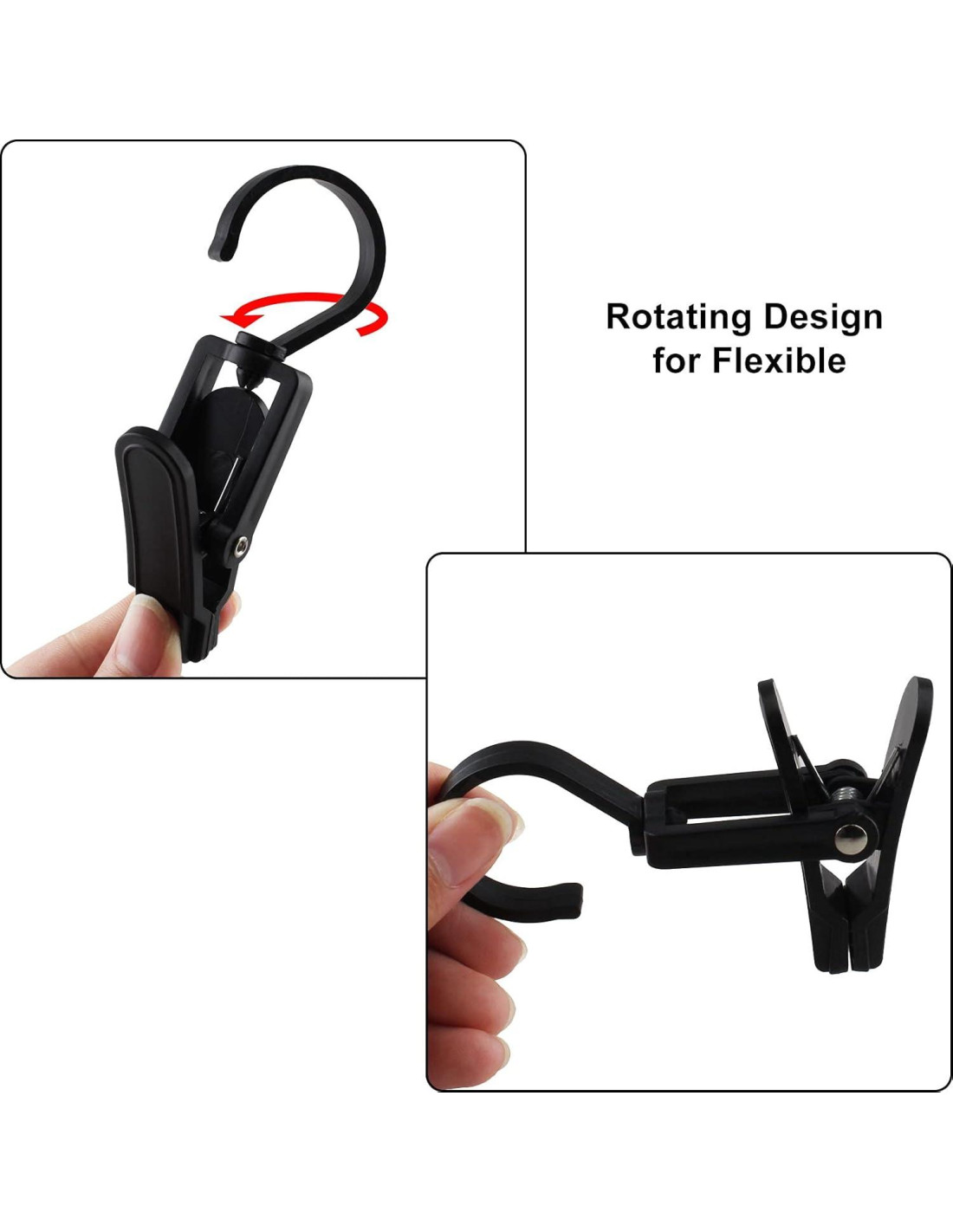- Diseño de Dientes Giratorios y de Agarre: El diseño de dientes internos de agarre puede aumentar la fricción, lo que puede mantener los artículos en su lugar y no se caerán fácilmente. El diseño giratorio de 360 grados hace que este clip sea más flexible. Los ganchos giratorios son fáciles de llevar y almacenar, por lo que son ideales para viajar y actividades al aire libre.