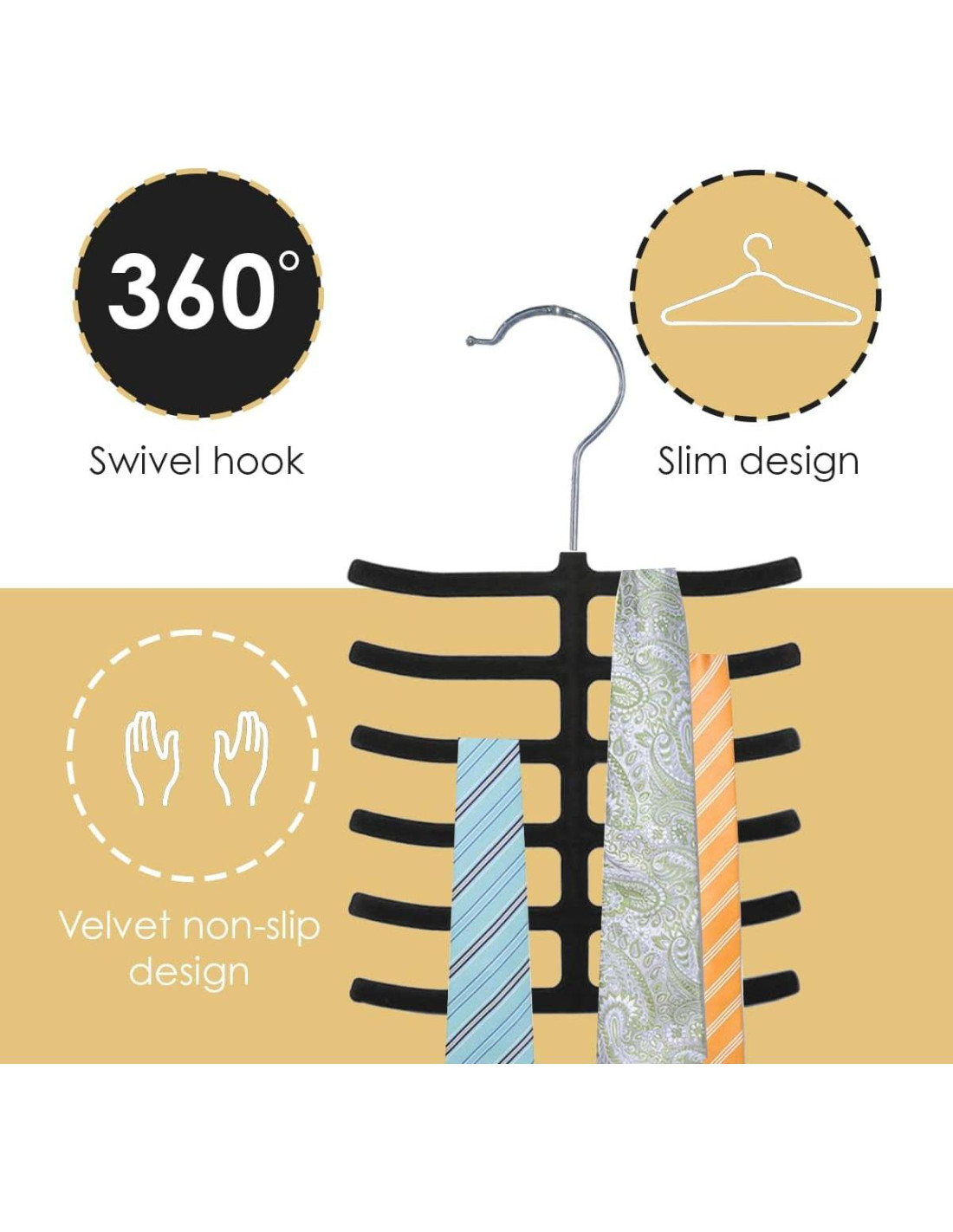 - ACABADO DE TERCIOPLO ANTIDESLIZANTE: El recubrimiento de terciopelo antideslizante asegura que tus corbatas, cinturones y bufandas se mantengan en su lugar, evitando que se deslicen y manteniendo tu armario ordenado y organizado.