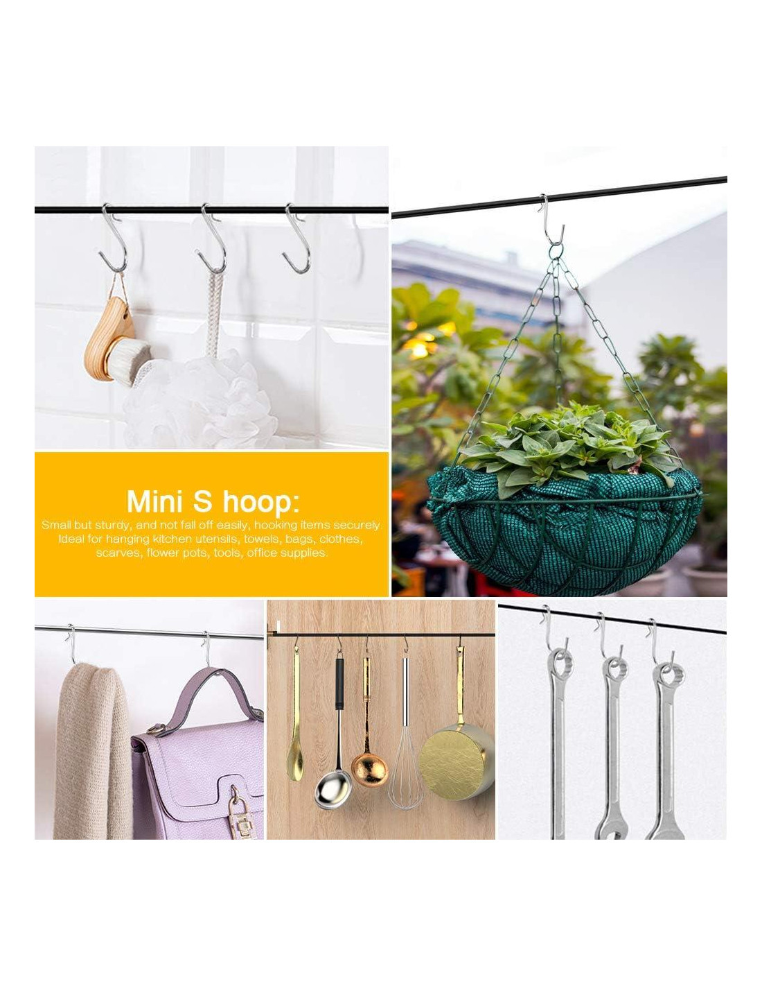 - Uso adecuado: Usa estos ganchos de alambre para colgar utensilios de cocina como ollas y sartenes, también se pueden usar para colgar toallas, bolsas, ropa, bufandas, macetas, herramientas de jardinería, suministros de oficina y herramientas de tienda. Con estos ganchos en S puedes organizar fácilmente tus objetos desordenados, ahorrar espacio y tener todo al alcance de tu mano.
