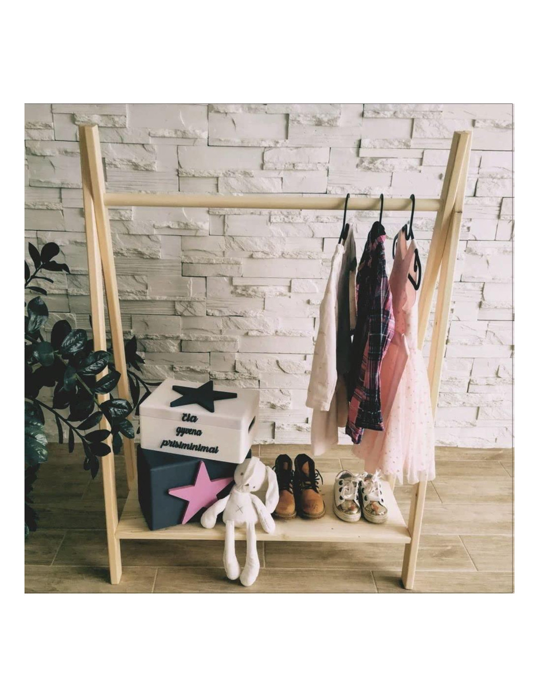 Perchero minimalista pero muy lindo diseñado para desarrollar las habilidades de orden del niño. ¡Un gran regalo para un cumpleaños de niños o como regalo de Navidad! Puedes elegir el color del perchero. Un perchero de ropa de madera para niños es un artículo práctico y conveniente en la habitación de tus hijos o bebés.