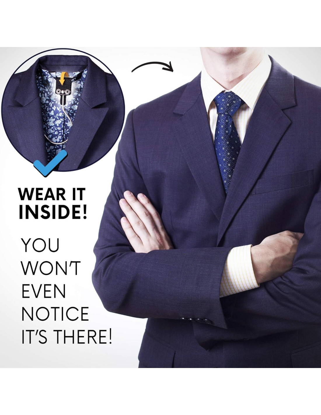 - Una percha que puedes llevar - Esta percha de viaje fue creada especialmente para que puedas simplemente deslizarla en la etiqueta de tu traje o chaqueta - o guardarla en tu bolsa de viaje, mochila o incluso en el bolsillo de tus jeans! ¡Nunca te quedes sin percha otra vez!