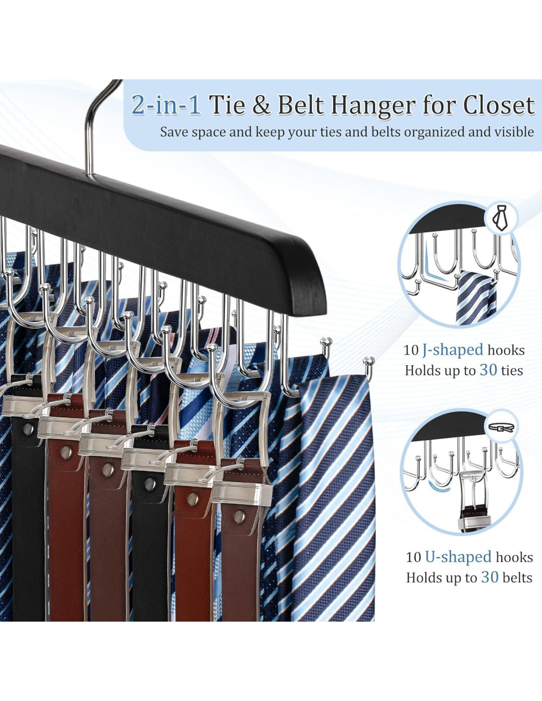 - Perchero de Cinturones de Gran Capacidad 2 en 1: El soporte de cinturones mejorado tiene 20 ganchos plegables; 10 ganchos en forma de U sostienen de manera segura hasta 30 cinturones (3 por gancho), y 10 ganchos en forma de J sostienen hasta 30 corbatas. Ahorra hasta un 80% del espacio en el closet y mantiene tus corbatas organizadas y claramente visibles.