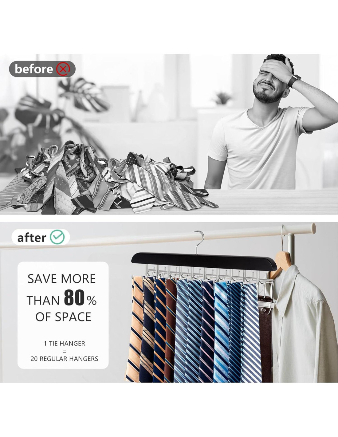 - Resistente y Duradero: El perchero de corbatas para closet está hecho de madera sólida de primera calidad y ganchos de acero inoxidable resistentes a la corrosión. Superficie suave con fina veta de madera. Gran capacidad de carga, no es fácil de doblar o romper. Impermeable, a prueba de óxido, textura exquisita y se adapta bien a varios estilos de hogar.