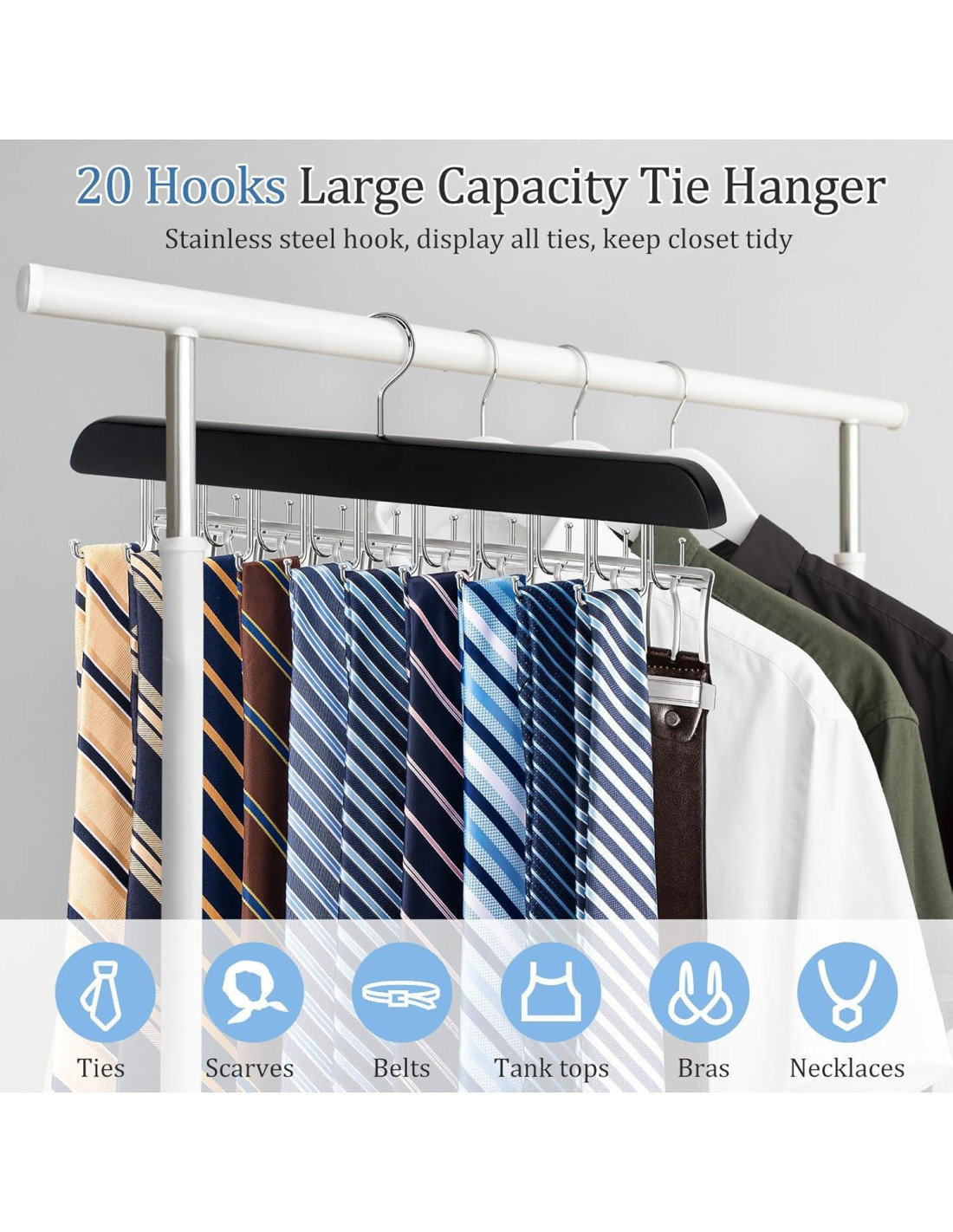 - Ganchos Giratorios Antideslizantes de 180: El soporte de corbatas cuenta con 20 ganchos flexibles y rotativos. Los ganchos en forma de J desplegados permiten un fácil acceso a las corbatas mientras previenen arrugas, enredos y pliegues. Cuando están plegados, los ganchos sostienen de manera segura las corbatas en su lugar, manteniéndolas planas y evitando que se deslicen.
